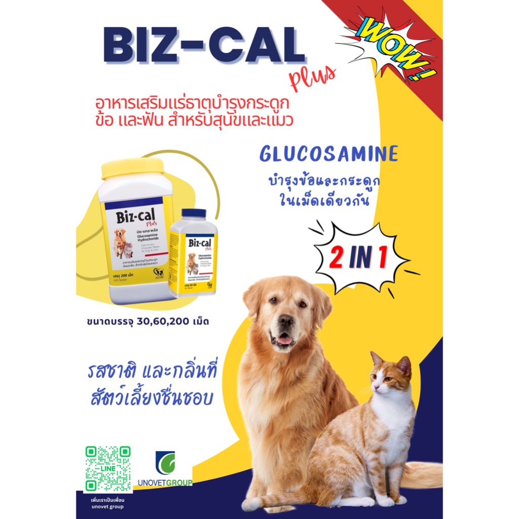 แพกเกจใหม่! Biz-cal Plus [แท้💯] อาหารเสริมบำรุงกระดูก ข้อต่อ และฟัน กลิ่นหอม อร่อย ทานง่าย สำหรับสุนัขและแมว