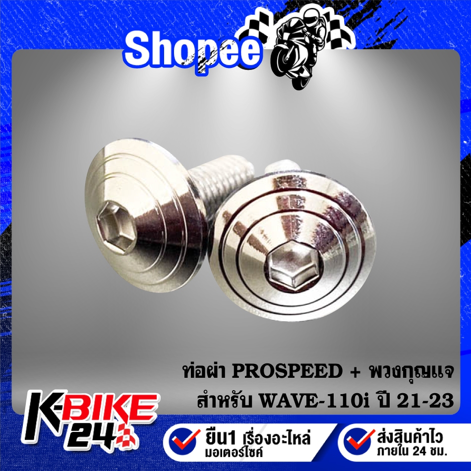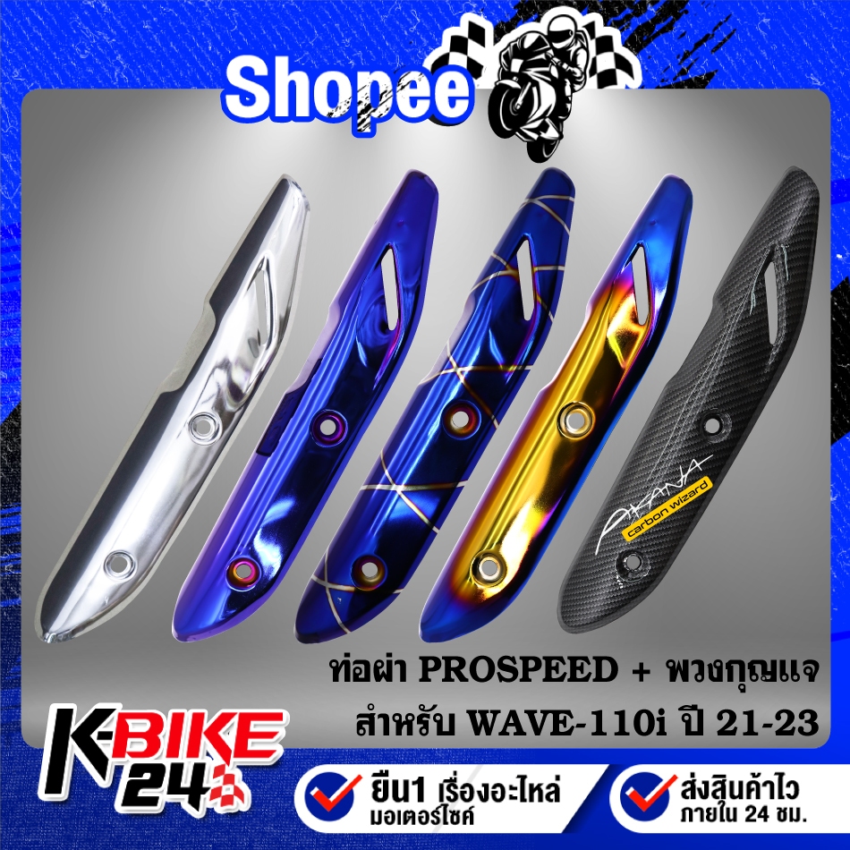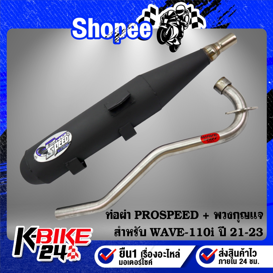 ท่อผ่า PROSPEED สำหรับ WAVE-110i ปี 21-23เวฟ110i ปี 21-23 มอกแท้ 100%+ กันร้อนเลือกได้ + น๊อตกันร้อน เลส 2 ตัว+พวงกุญแจ