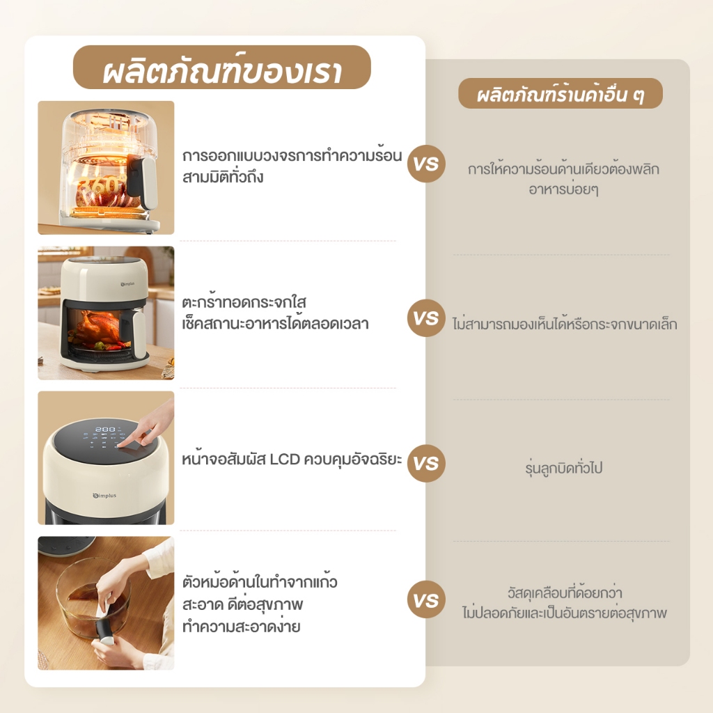 [สินค้ามีการอัปเกรดแผงภาษาไทย]Simplus Air Fryer หม้อทอดไร้น้ำมัน รุ่นใหม่ ใช้ในครัวเรือน ความจุ 3.5L ระบบสัมผัส 10 ฟังก์ชั่นที่ตั้งไว้ล่วงหน้า ฟังก์ชั่นความจำ KQZG017