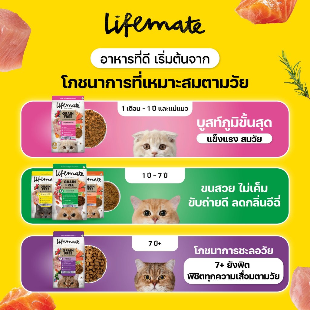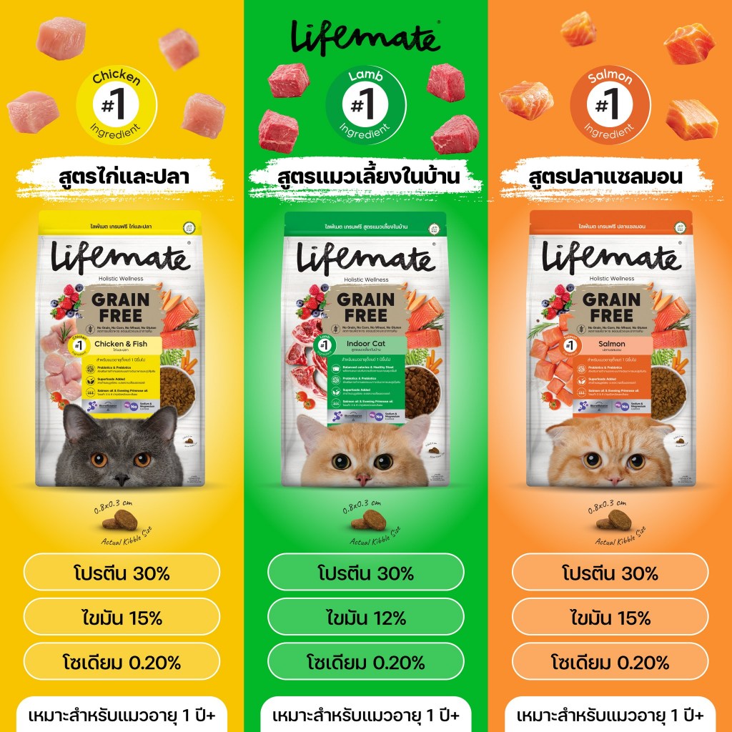 (1.2กิโล) Lifemate อาหารแมว เกรดHolistic ไม่เค็มสูตร ไก่และปลา / ปลาแซลมอน / เลี้ยงในบ้าน / ลดคัน