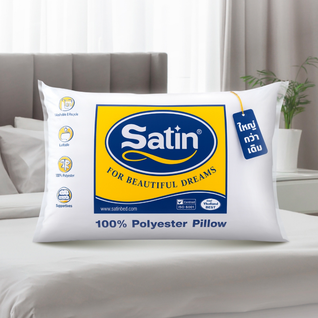 [ซื้อ 1 แถม 1] ซาติน หมอนหนุน ใยสังเคราะห์ ขนาด 19x29 นิ้ว SATIN POLYESTER PILLOW 19X29 INCH