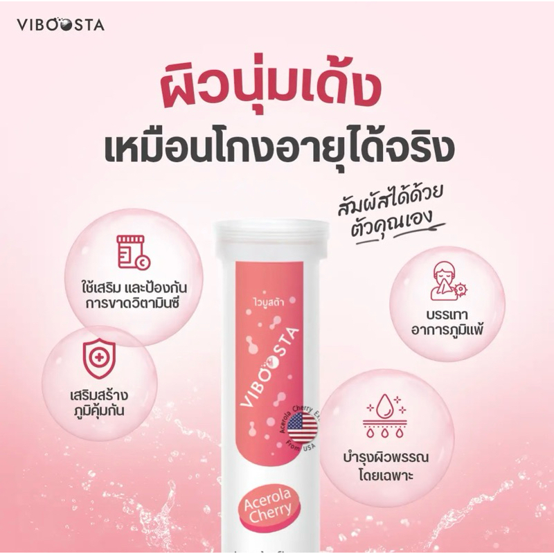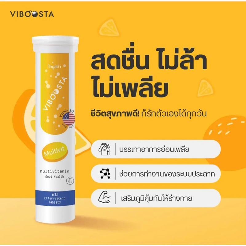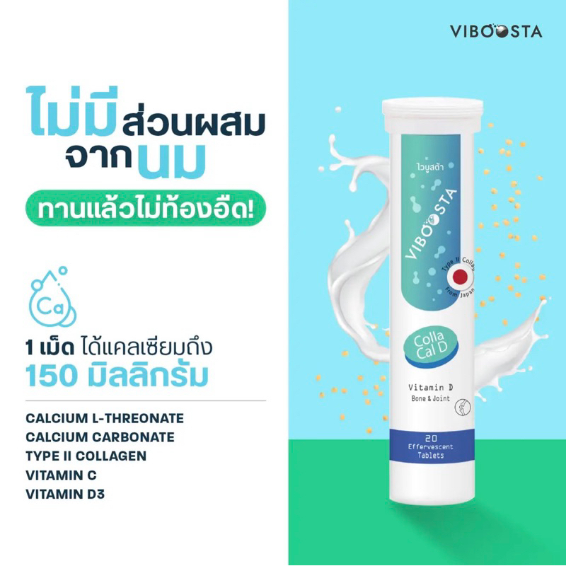 VIBOOSTA (ไวบูสต้า) วิตามิน เม็ดฟู่ หลอด 20 เม็ด Colla Cal D / Multivit / Acerola Cherry / Lutein Plus / MG PLUS
