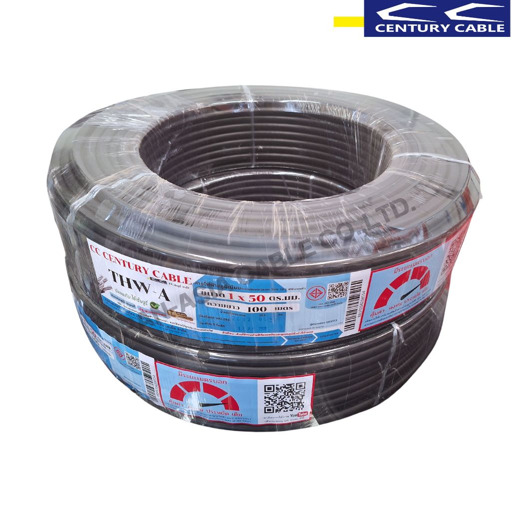 สายไฟ THW-A 1x50 SQ.MM. สายไฟอลูมิเนียมแท้ สายไฟเดี่ยว ทนความร้อน 70 องศา CENTURY (สินค้าส่งตรงจากโรงงานผลิตในไทย)