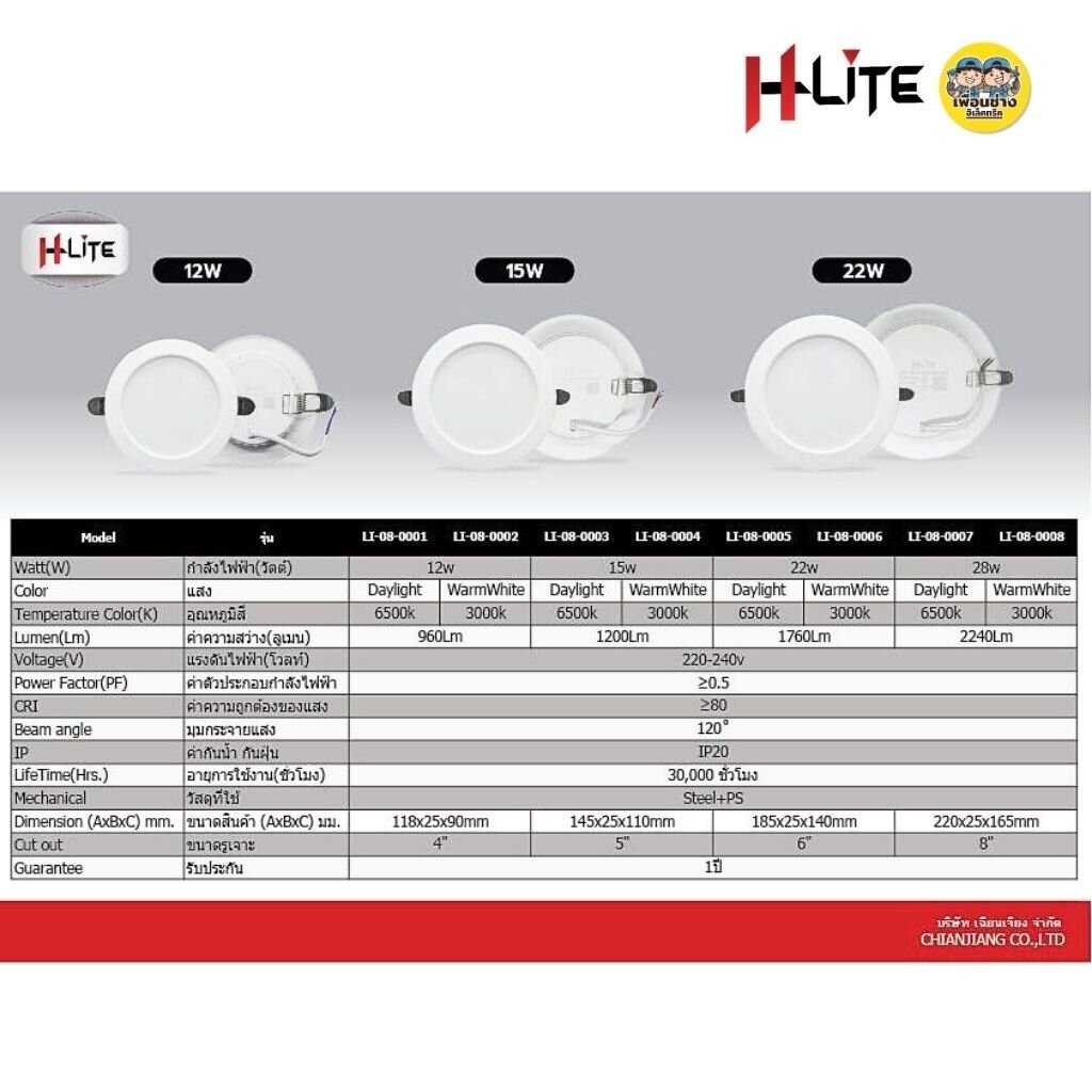 HLite ดาวน์ไลท์ฝังฝ้า แบบกลม 12w 15w 22w 28w ขนาด 4" 5" 6" 8" แบบฝังฝ้า โคมไฟ LED ดาวน์ไลท์ฝัง แสงขาว แสงวอร์ม