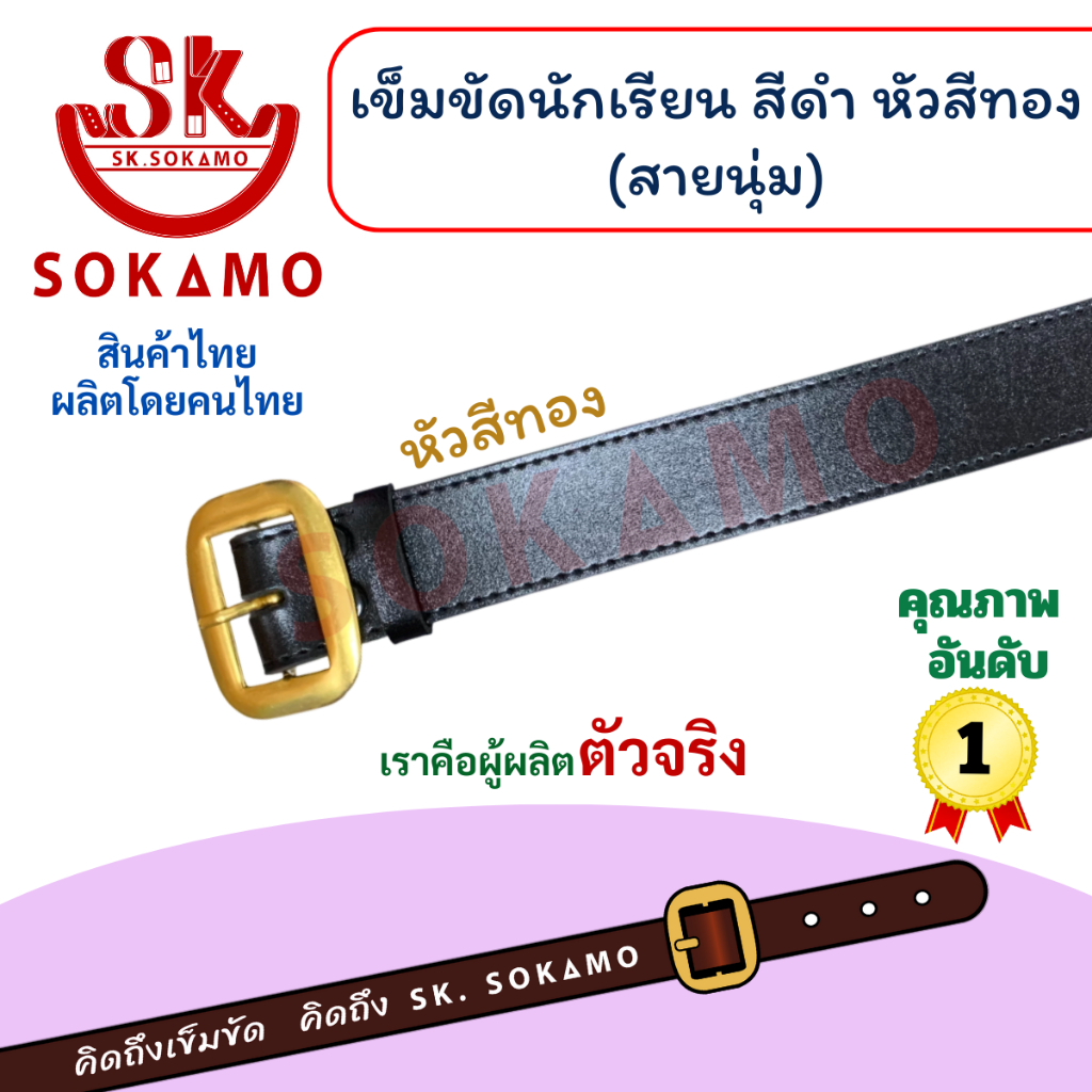 เข็มขัดนักเรียน นุ่ม สีดำ หัวสีเงิน (สำหรับประถม 1-3) SOKAMO