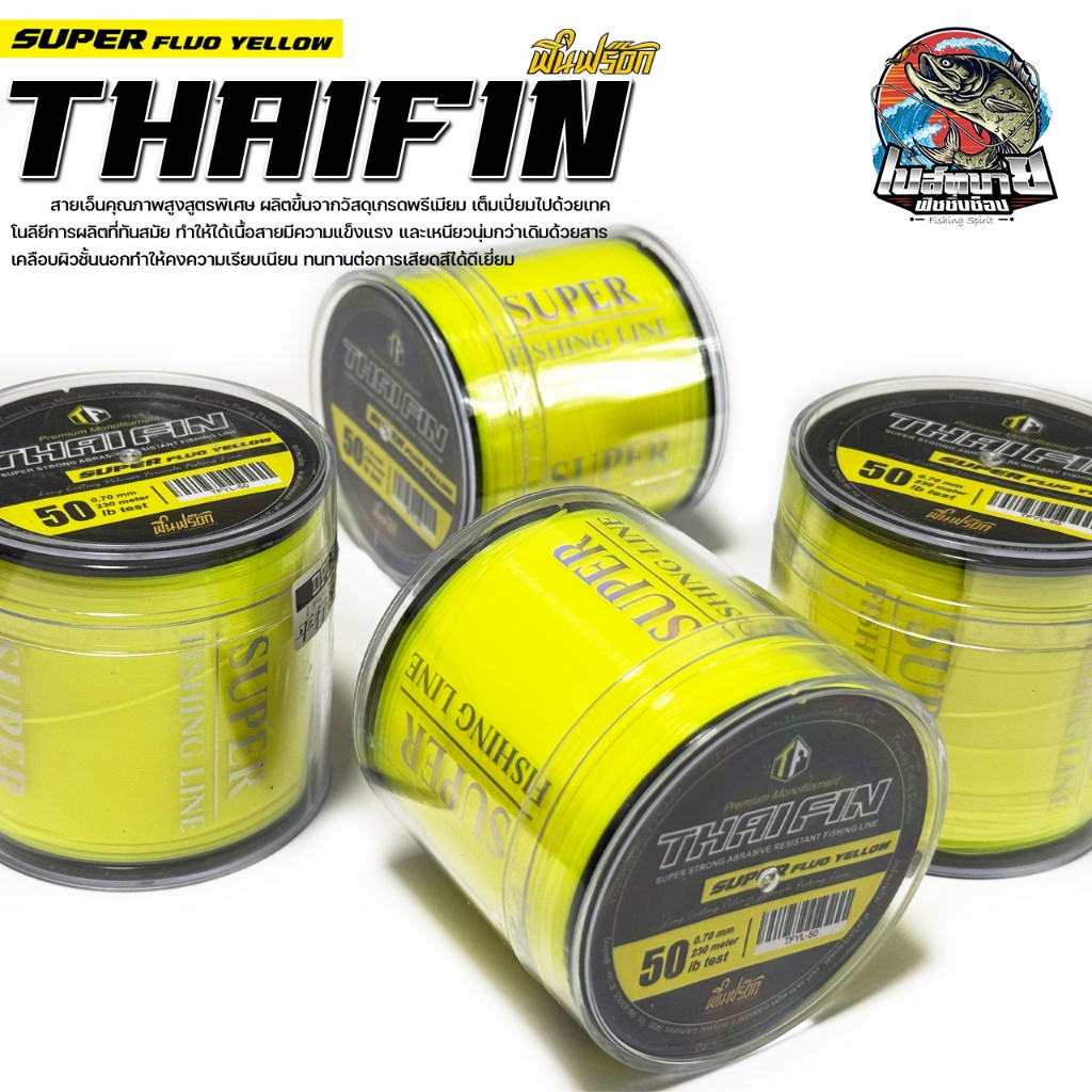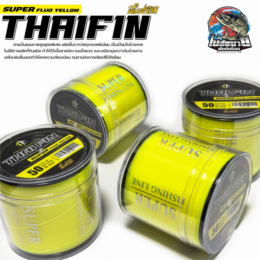 สายเอ็นไทฟิน THAIFIN SUPER FLUO YELLOW เอ็นเต็ม เหนียวมาก ใช้งานได้ทั้งกลางวันและกลางคืน ใช้งานได้ทุกสภาพหมา
