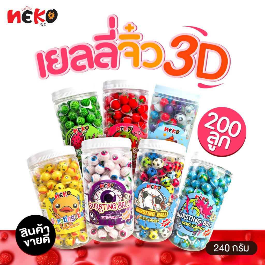 (200 ลูก) เยลลี่มินิ 3D จิ๋ว เยลลี่ลูกตา เนื้อหนึบหนับ (1 ชิ้น/2 กรัม) ชิ้นเล็กมินิ อร่อย สอดไส้ผลไม้ 6 รสชาติ