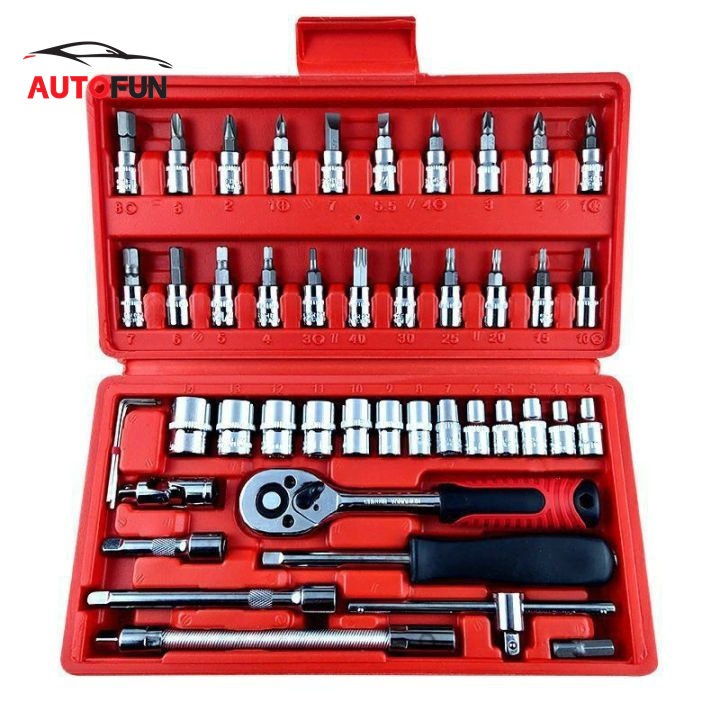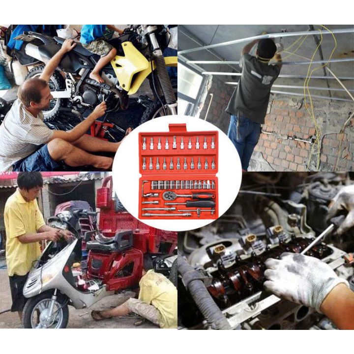ชุดบล็อก และประแจชุดเครื่องมือขนาด1/4จำนวน46ชิ้นชุดไขควงชุดประแจชุดบล็อคเครื่องมือช่าง46ใน1 (A-49)