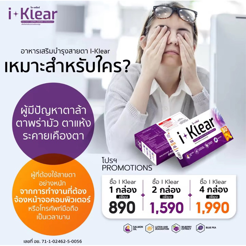 I KLEAR (ไอเคลียร์) iklear อาหารเสริมบำรุงสายตา I klear (โปร 5กล่อง)
