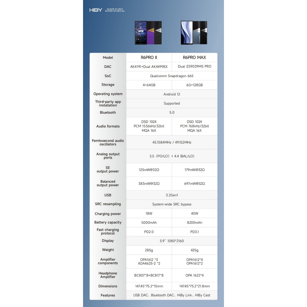[โปรราคาพิเศษ] [ประกันศูนย์ไทย] Hiby R6 PRO MAX Hi-Res Music Player พกพา รองรับ MQA, Dual Hi-Res