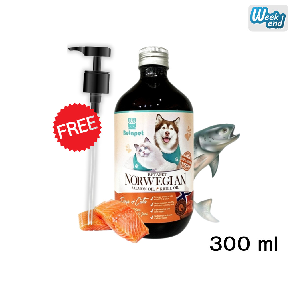 Betapet น้ำมันปลาแซลมอนแท้ 100% Premium จาก Norway บำรุงขนผิวน้องหมาน้องแมว ช่วยให้เจริญอาหาร แถมหัวปั๊มฟรี🎈