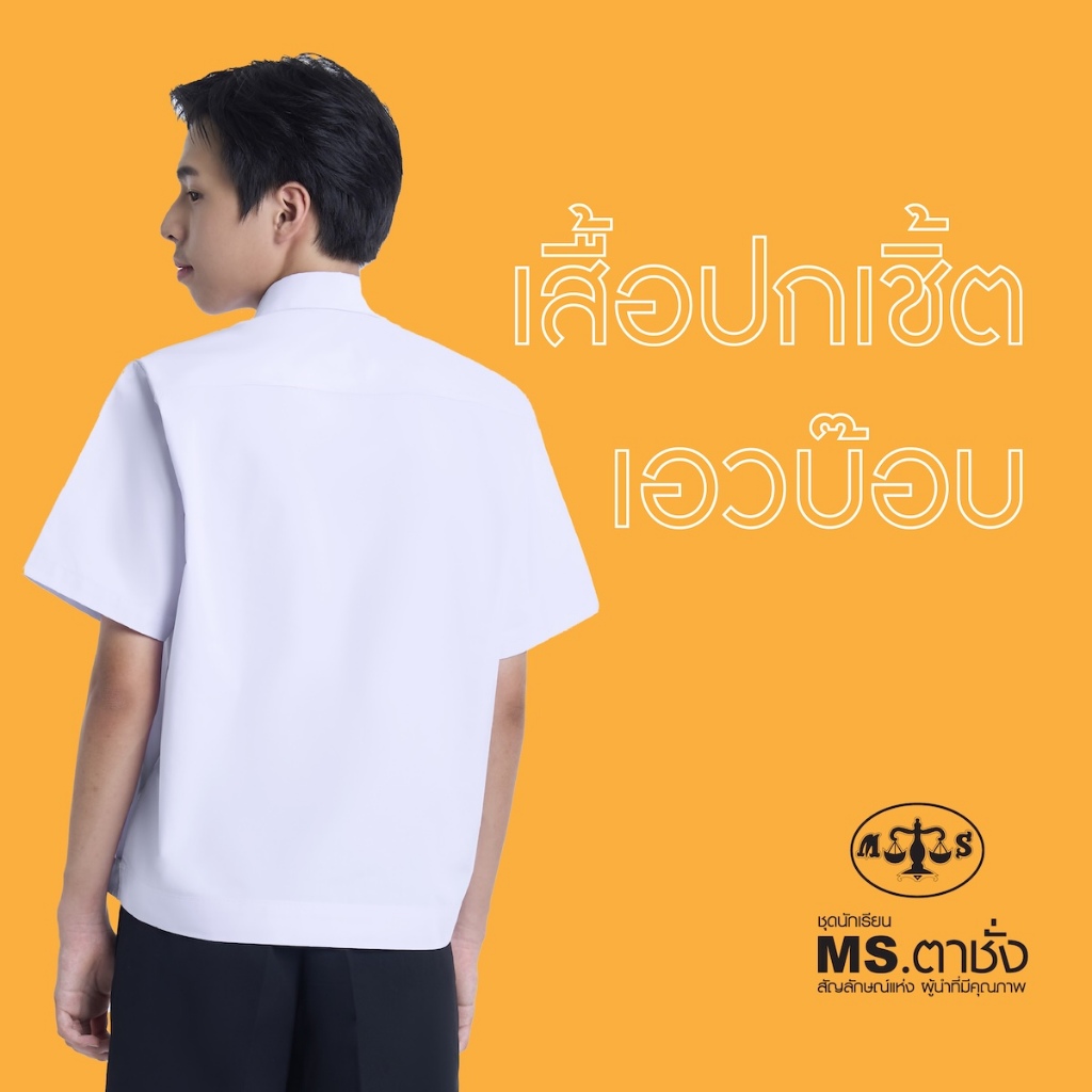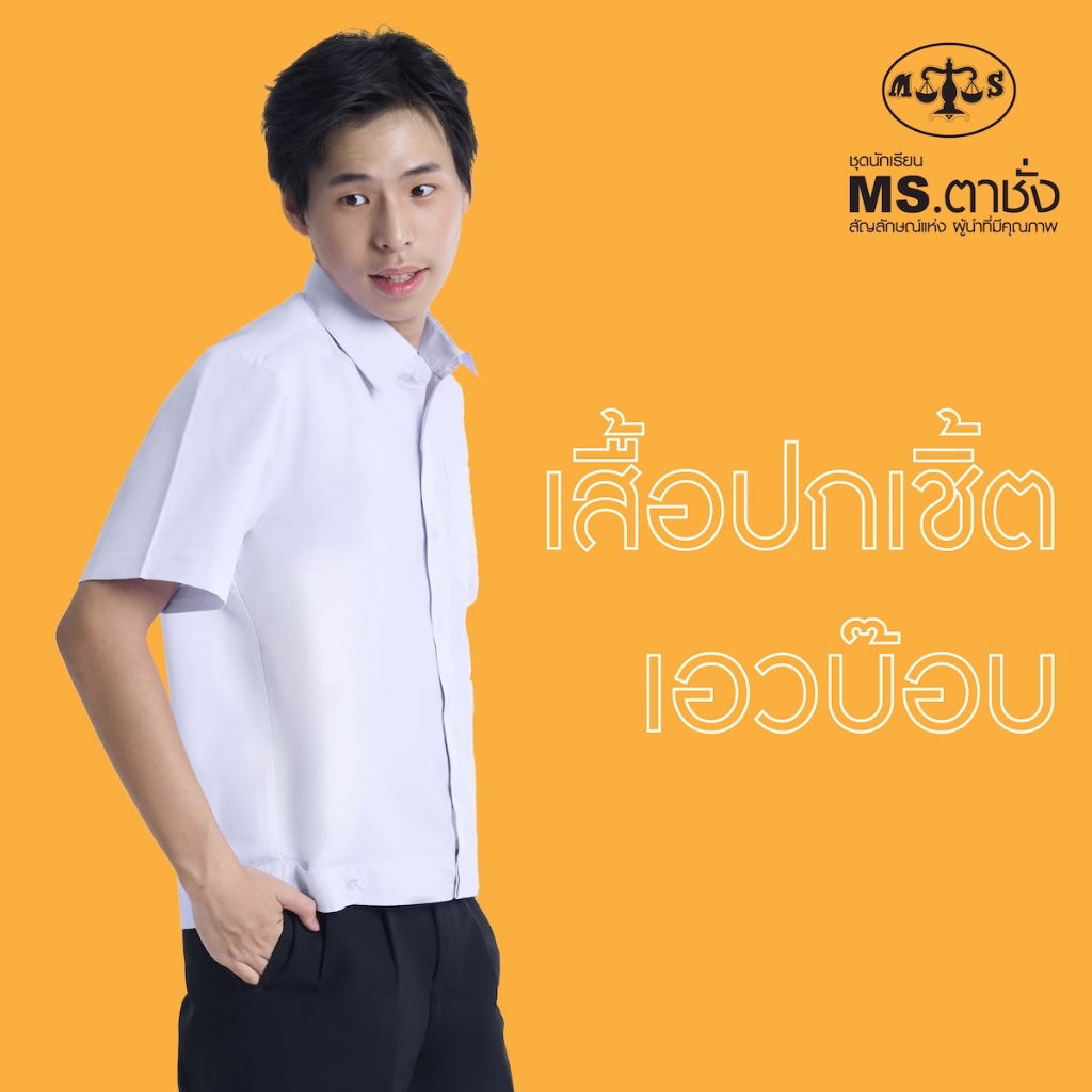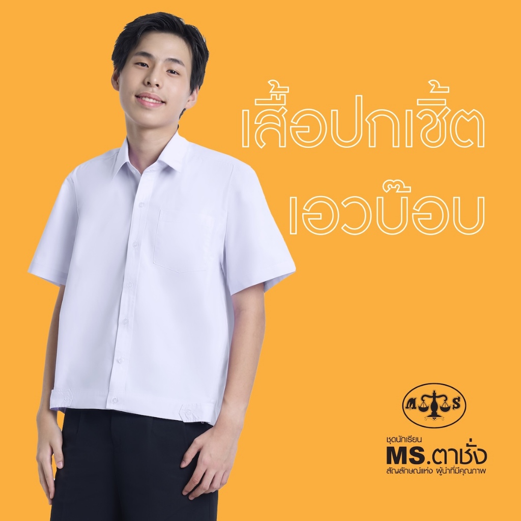 เสื้อปกเชิ้ตเอวบ๊อบ /เอวจั๊ม อก 36-48 นิ้ว ประถม มัธยม MS ตาชั่ง เสื้อตาชั่ง - เสื้อนักเรียนชาย สีขาวโอโม่ MSตาชั่ง