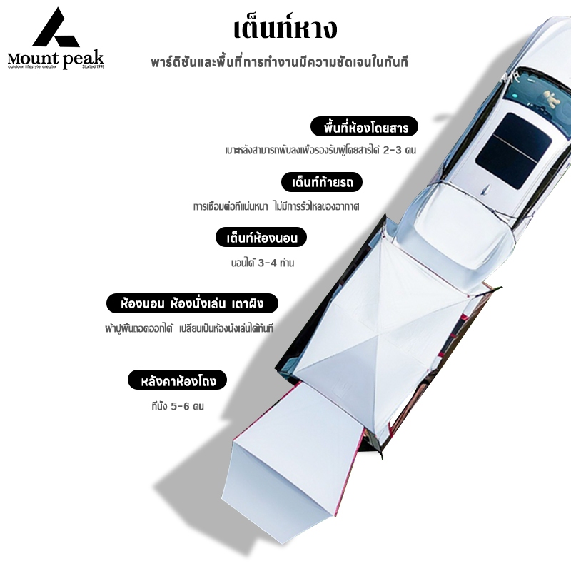 พร้อมส่ง⚡️Mountpeak เต็นท์ท้ายรถ เต็นท์เสาลมท้ายรถ 2 ห้องนอน กันน้ำกันแดด สำหรับรถ SUV PPV MPV