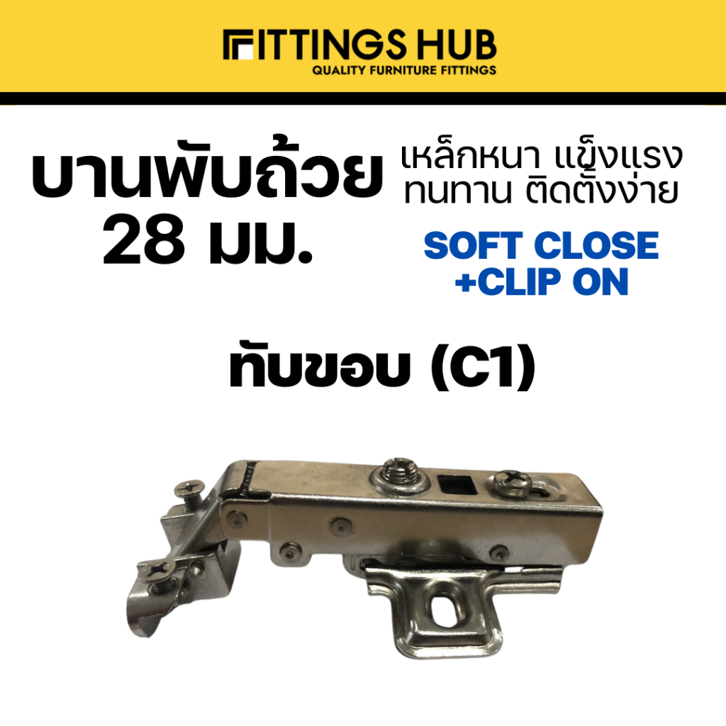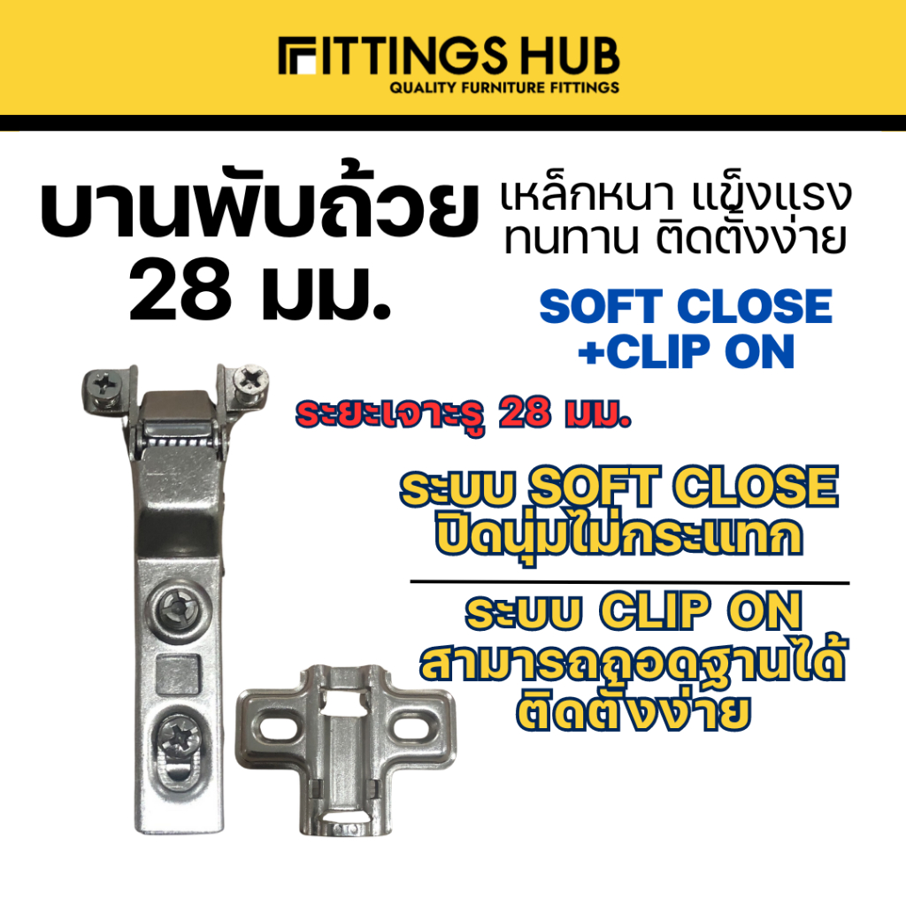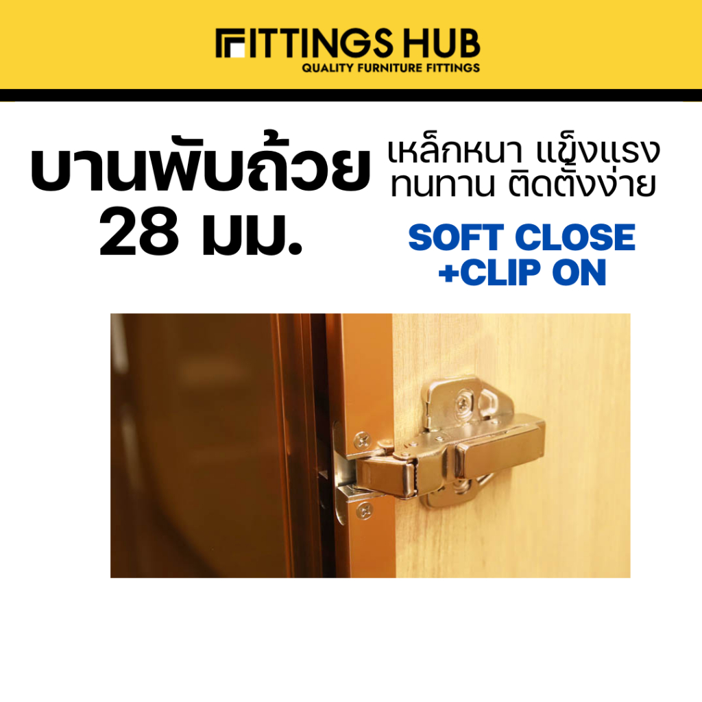 (1คู่)บานพับถ้วย 28 มม. Soft Close + Clip On เฟรมอลูมิเนียม ถอดฐานได้ - fittingshub
