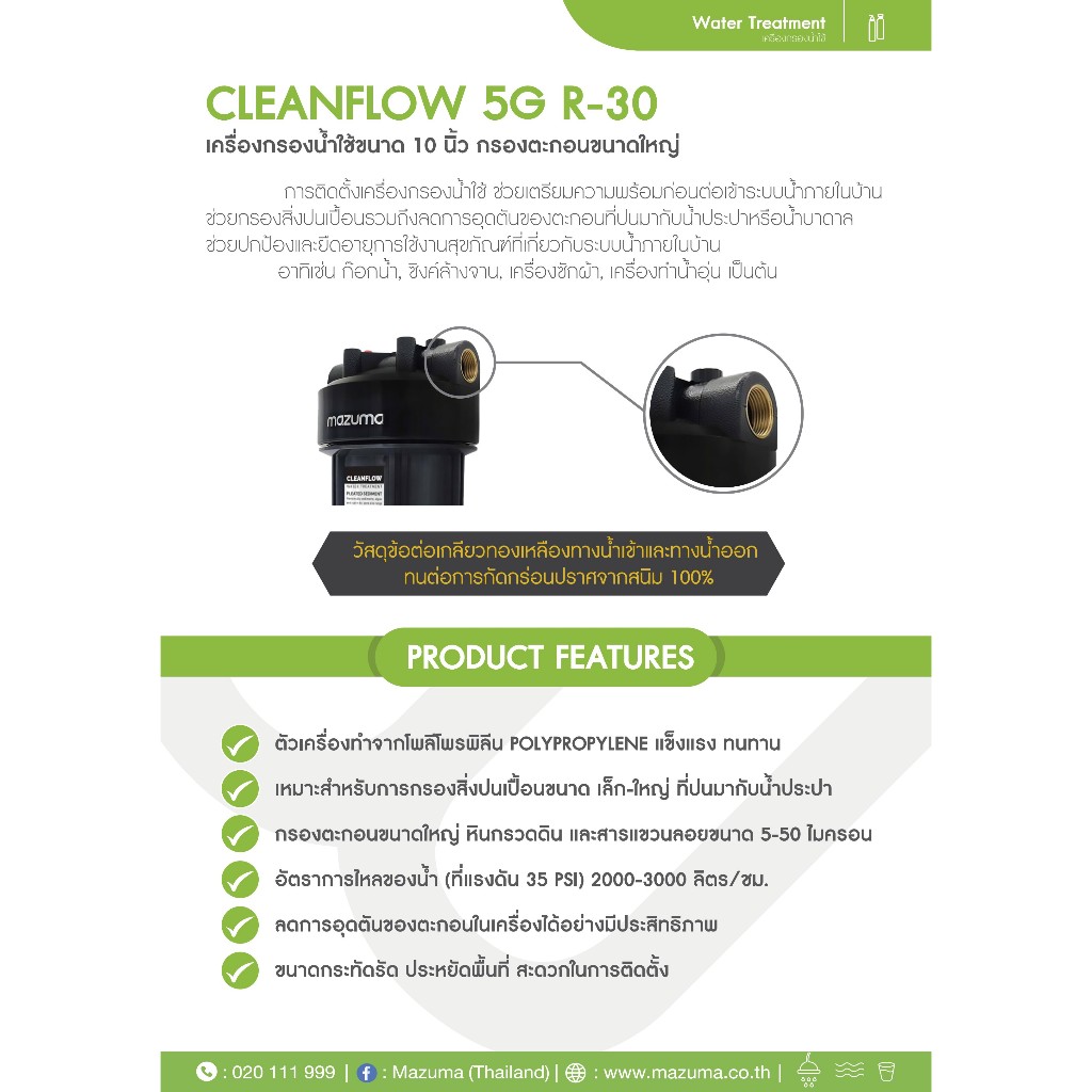 Mazuma เครื่องกรองน้ำใช้ 1 ขั้นตอน รุ่น CLEANFLOW 5G กรองตะกอนขั้นต้น