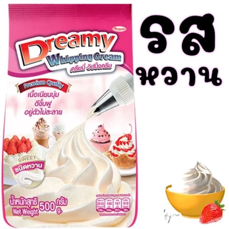 (สีชมพู) วิปปิ้งครีม ตราดรีมมี่ Dreamy (รสหวาน) แบ่งขายปริมาณ 100 กรัม