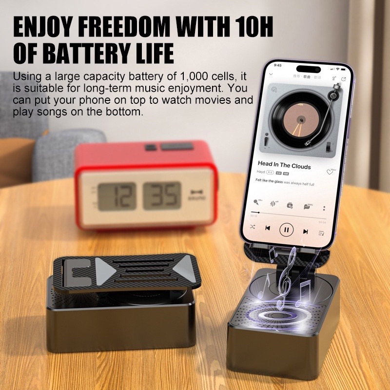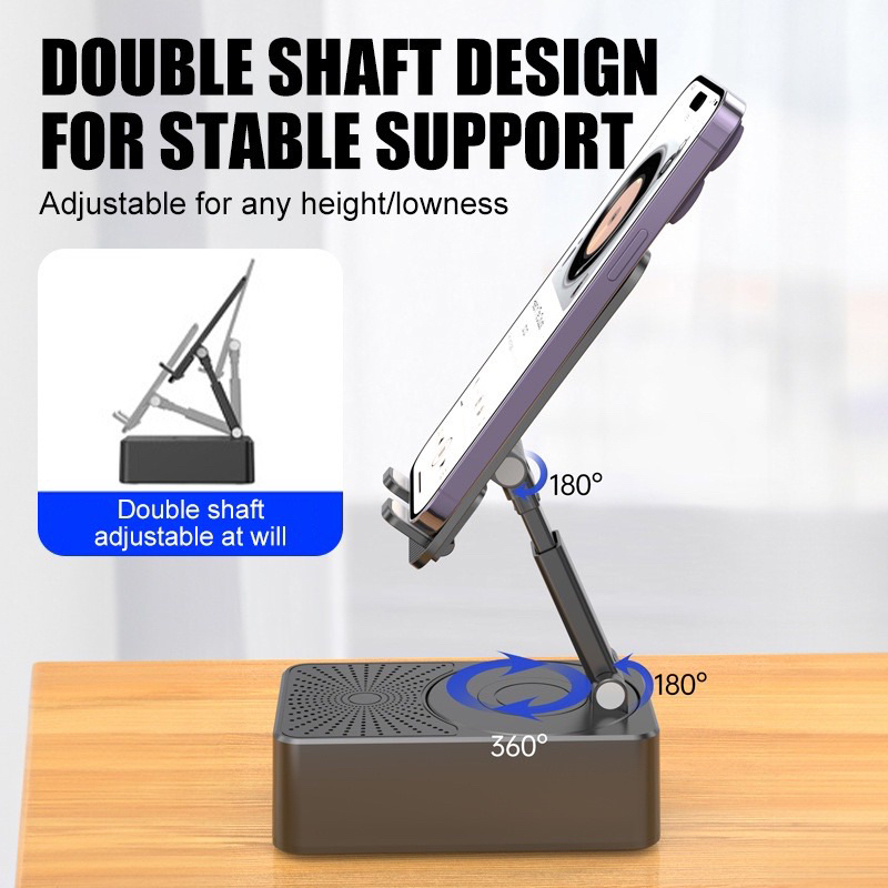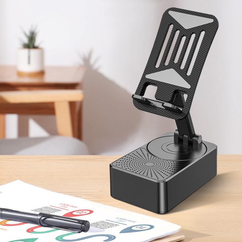 ขาตั้งโทรศัพท์มือถือ พร้อมลําโพงบลูทูธไร้สาย และฐานกันลื่น HD สําหรับบ้าน และกลางแจ้ง