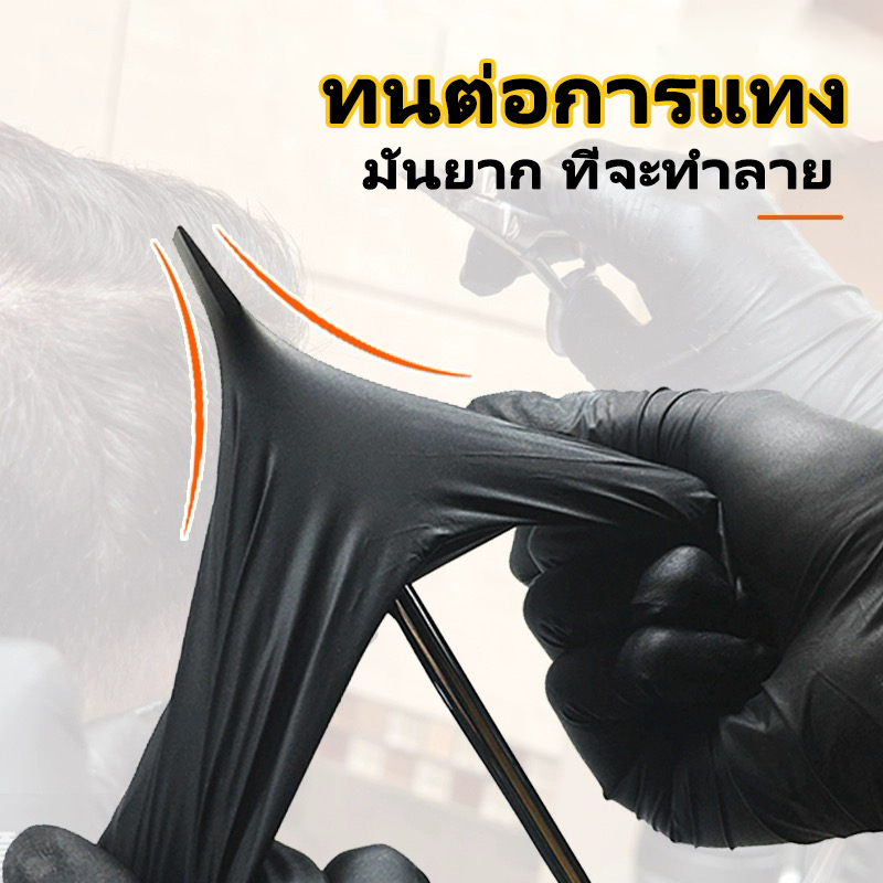 ถุงมือไนไตร ไม่มีแป้ง ถุงมือ ใช้ในอาหาร งานบ้าน ถุงมือยางสีดํา งานครัว (บรรจุ 100ชิ้น/กล่อง)