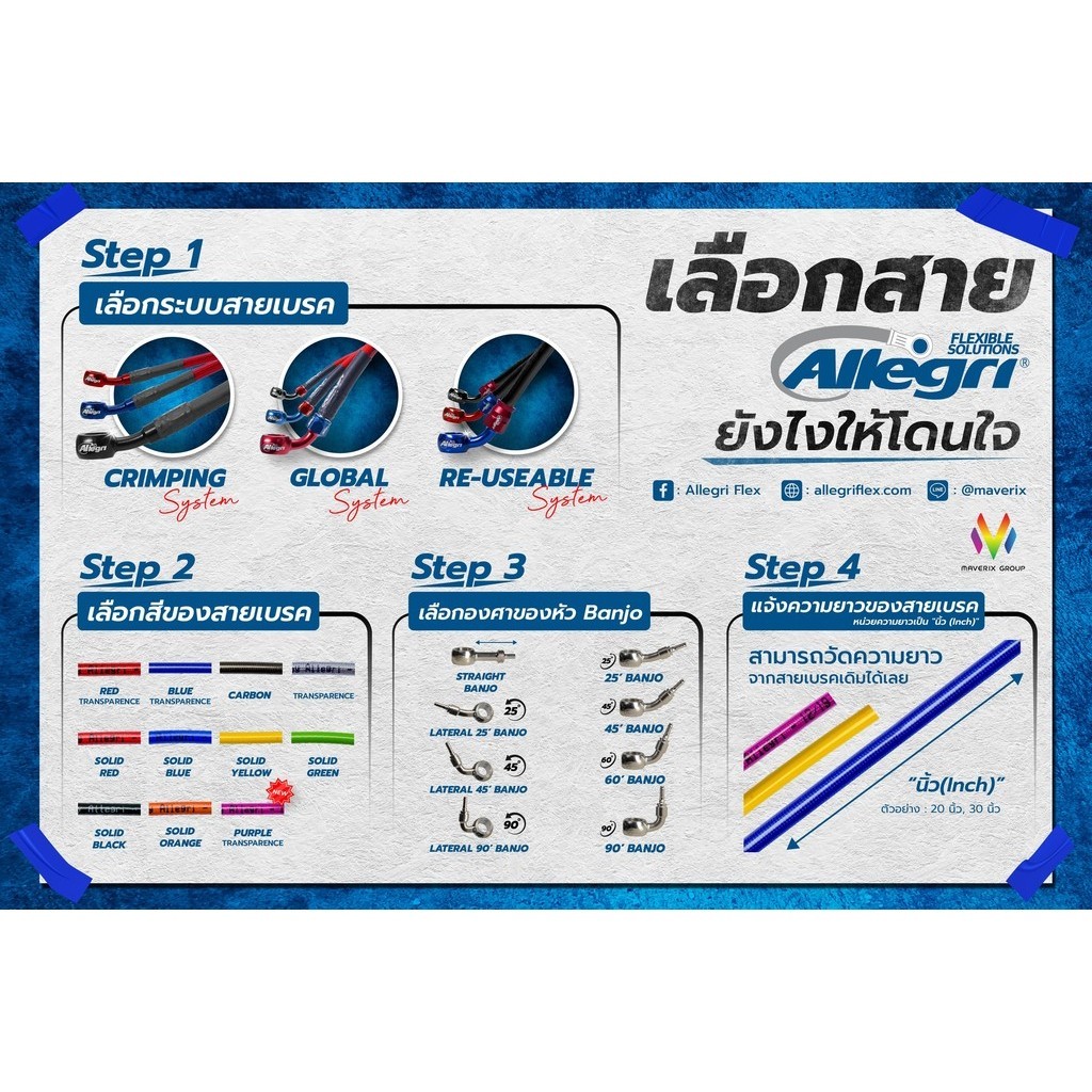 สายเบรค Allegri สีน้ำเงินทึบ (Solid Blue) สายถักทนความร้อนได้สูง ลดอาการเบรคเฟด (หากไม่ต้องตัดสายกรุณาแจ้งแอดมิน)