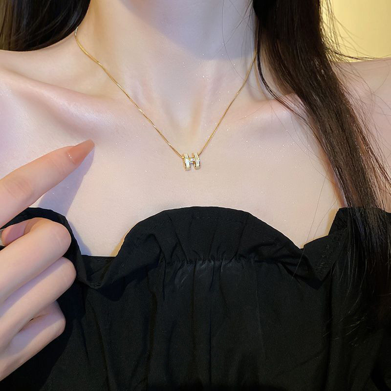 Yinuovo จี้เครื่องประดับแฟชั่นล่าสุดสําหรับผู้หญิงตัวอักษรเพทาย H ไทเทเนียมเหล็กสร้อยคอเค้นคอชุบทอง 18K ของขวัญ