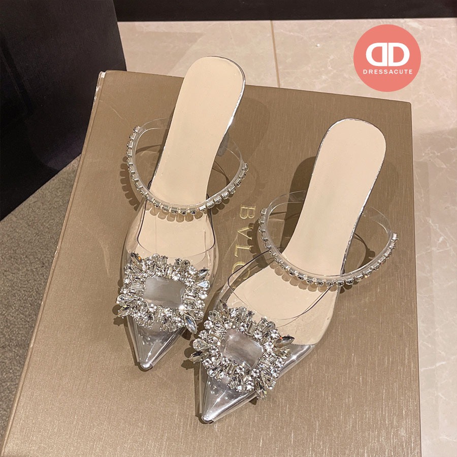 มาใหม่ สวยมากก 💎1063 รองเท้าส้นสูง ส้นแก้ว หัวแหลม แต่งอะไหล่คริสตัล รองเท้าผู้หญิง💎