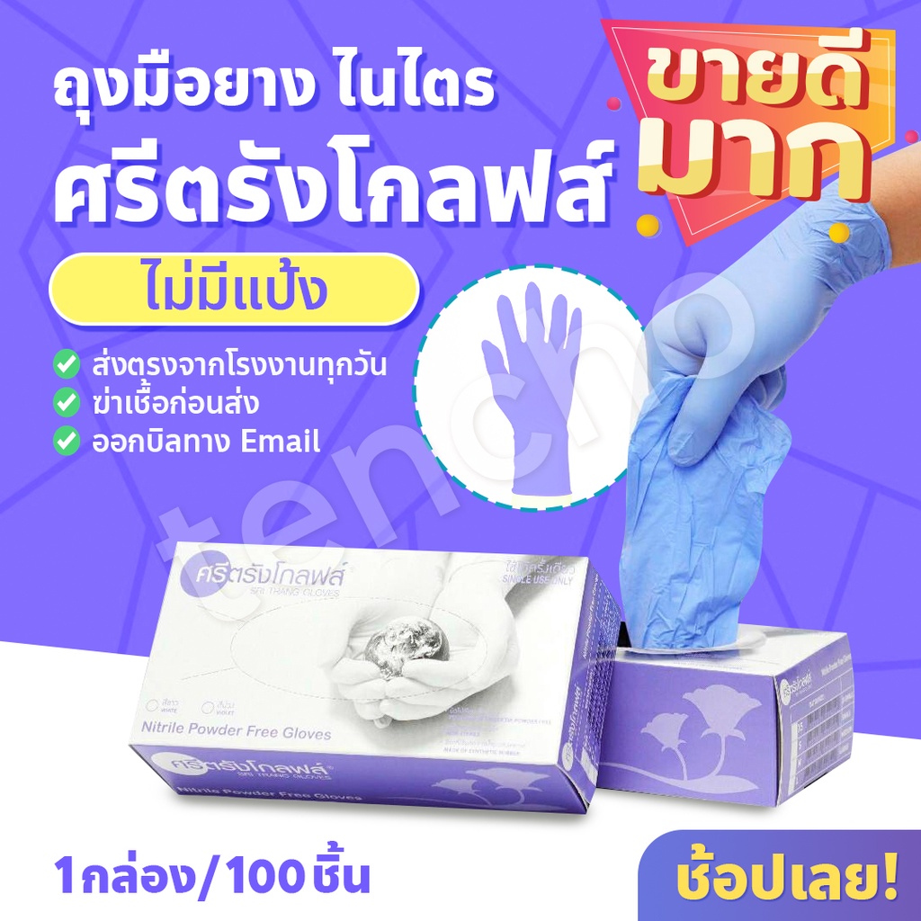 (ส่งฟรี)ถุงมือศรีตรัง หนา 3.5 mถุงมือยางไนไตรม่วง กล่องม่วง*ออกใบกำกับได้ส่งไวของแท้จากโรงงาน!