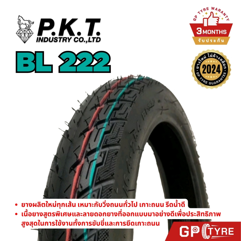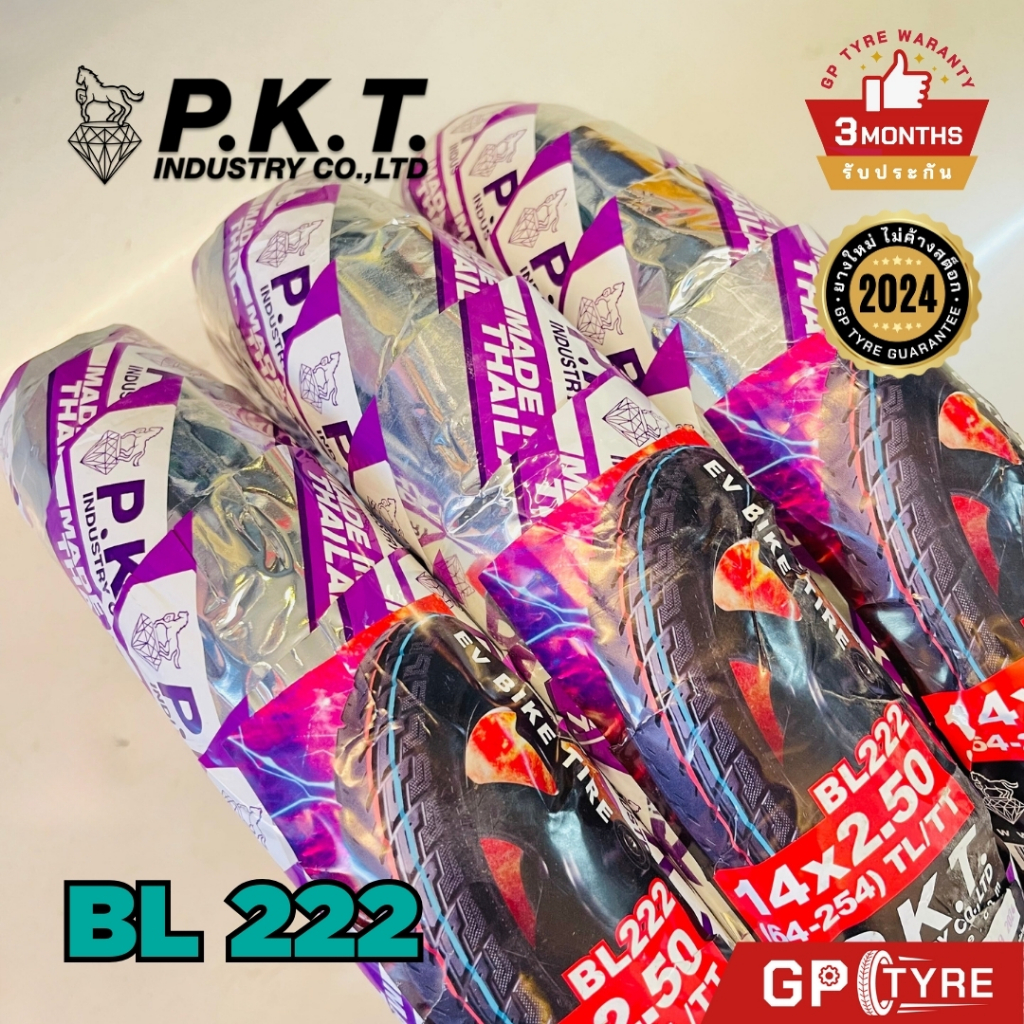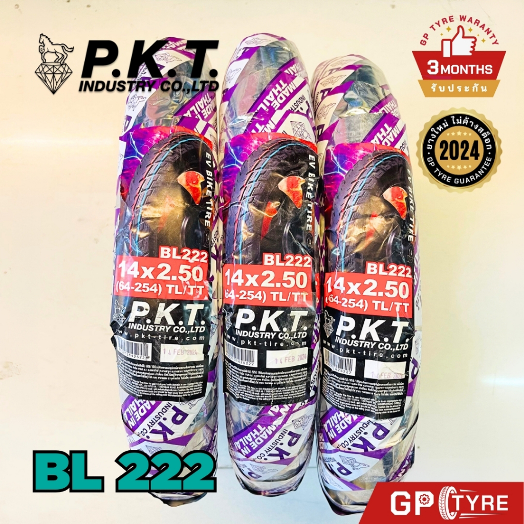 ยางนอก จักรยานไฟฟ้า PKT BL222 14x2.50 ไม่ใช้ยางใน (Tubeless) ยางรถไฟฟ้า ยางนอกTL คุณภาพดี พีเคที ม้าเพชร ev มอไซค์ไฟฟ้า