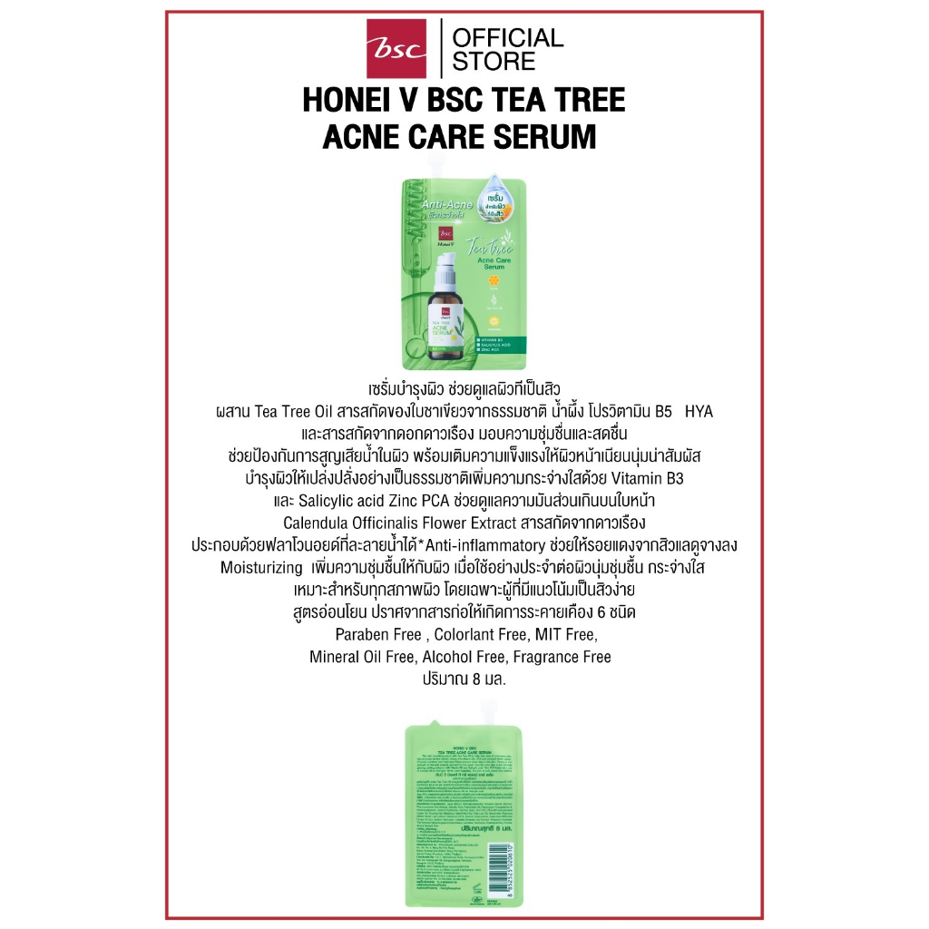HONEI V BSC TEA TREE ACNE CARE SERUM ฮันนี่ วี บีเอสซี ที ทรี แอคเน่ แคร์ เซรั่ม เซรั่มบำรุงผิว ช่วยดูแลผิวทีเป็นสิว