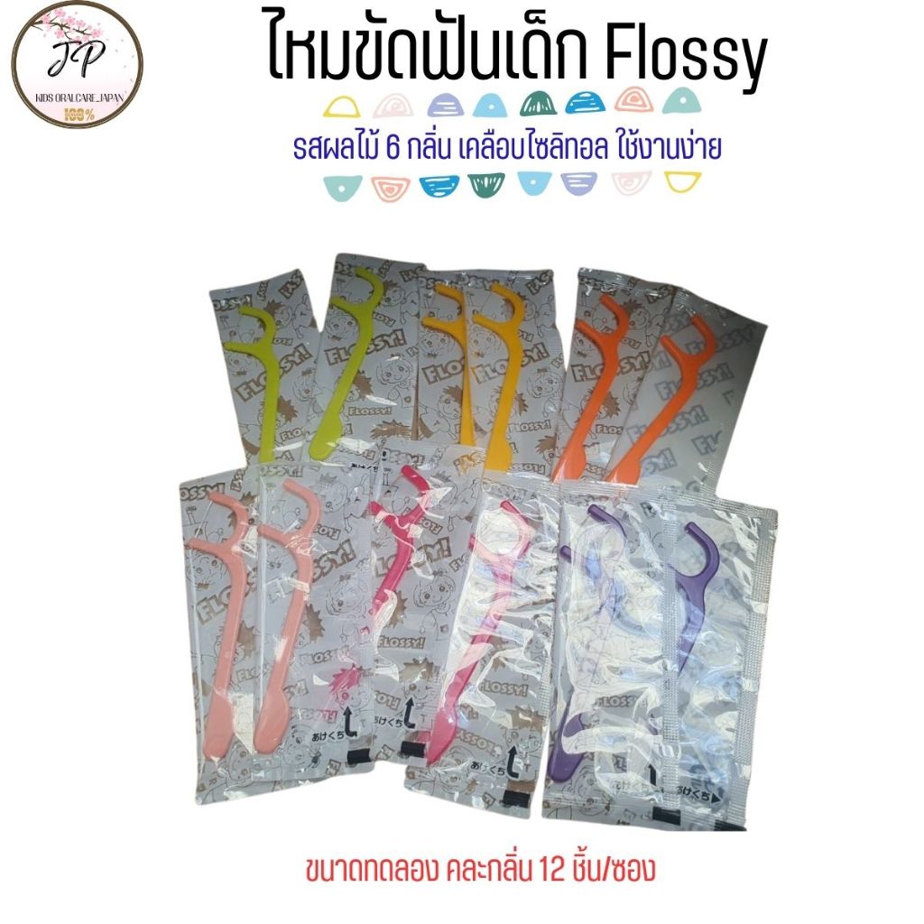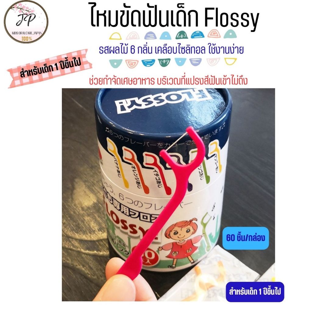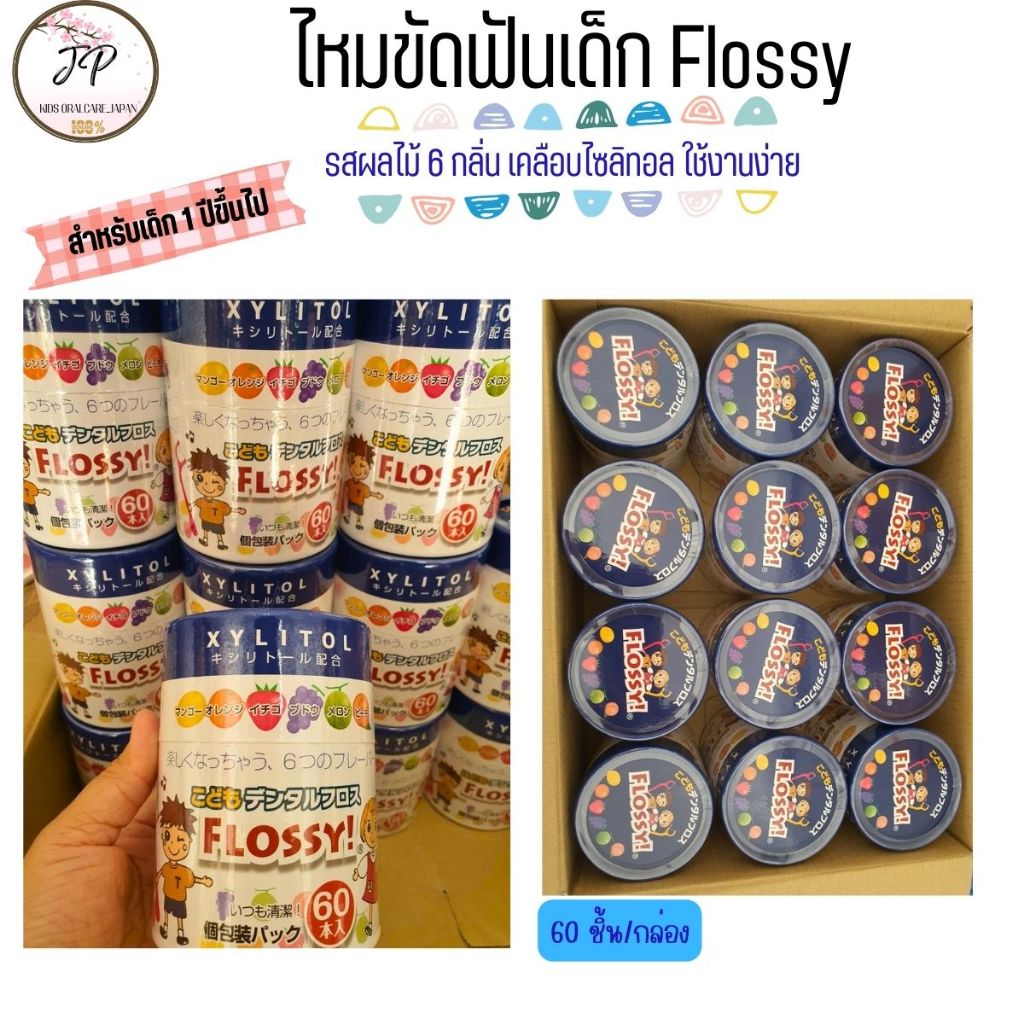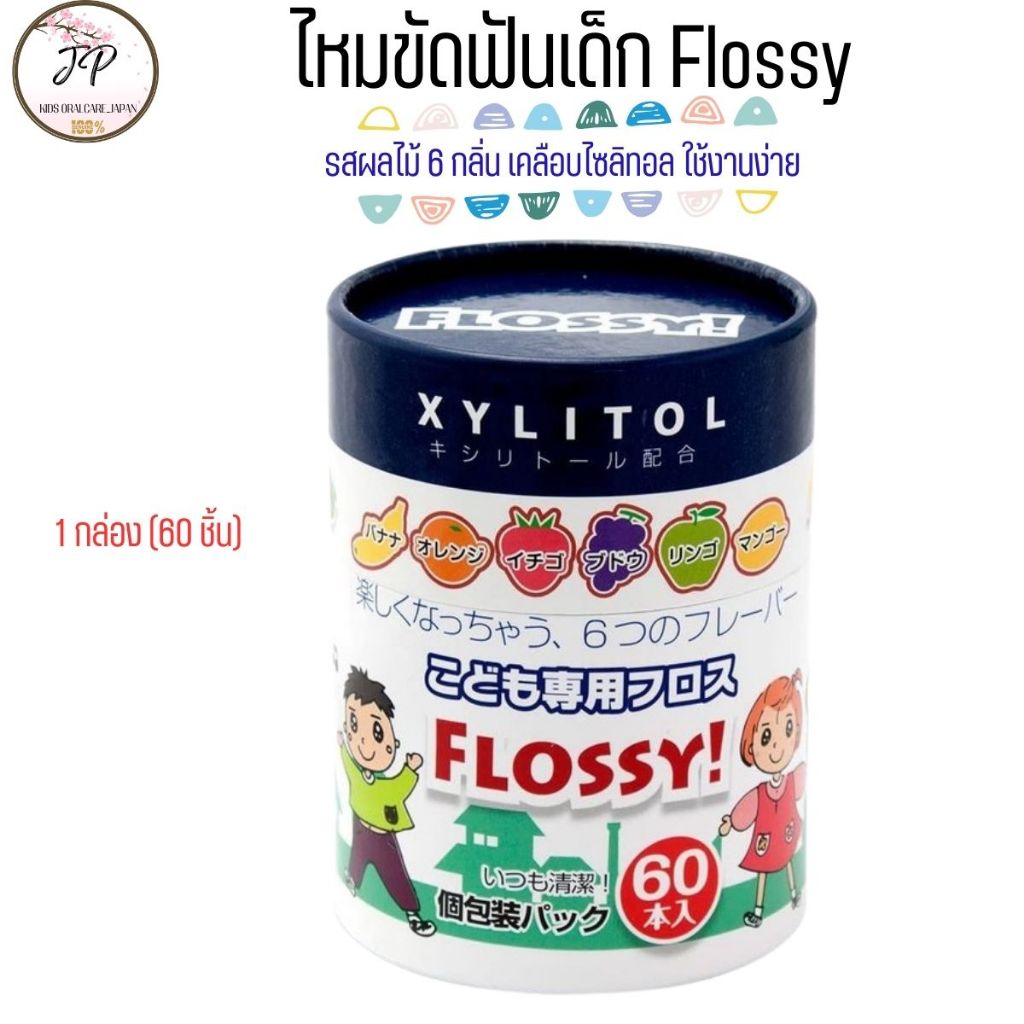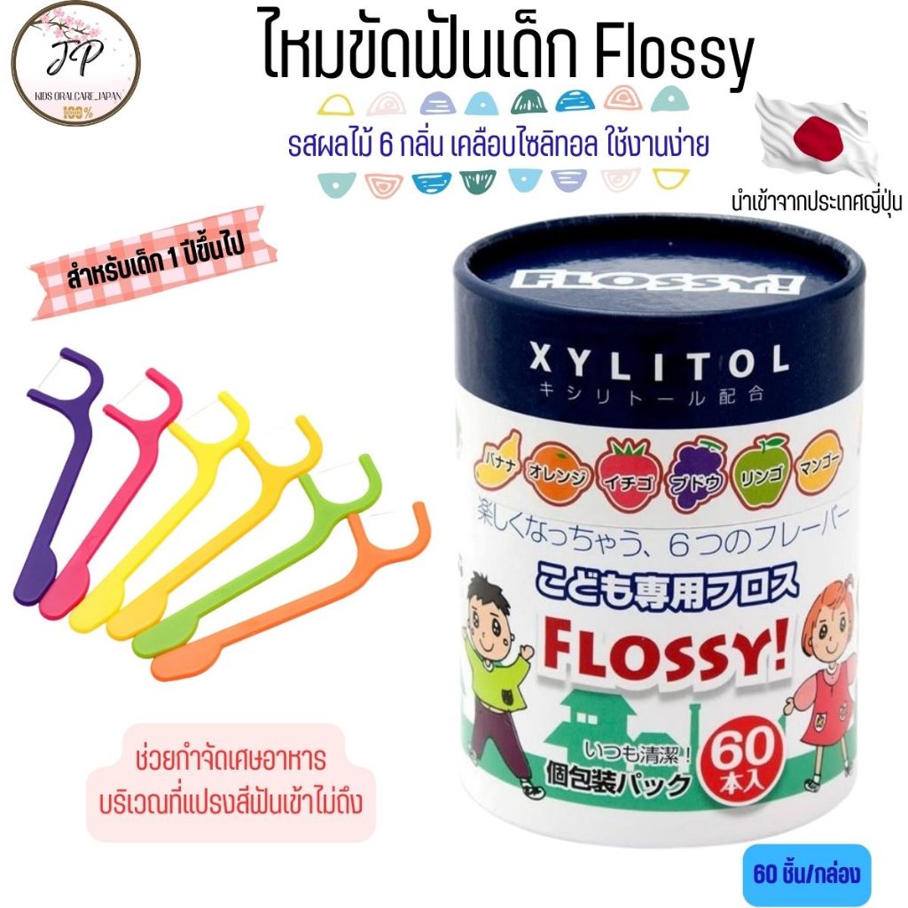 XYLITOL FLOSSY ไหมขัดฟันเด็กญี่ปุ่น ไหมขัดฟันแบบด้าม รสผลไม้ผสมไซลิทอล 6 รสชาติ (30/60ชิ้น)