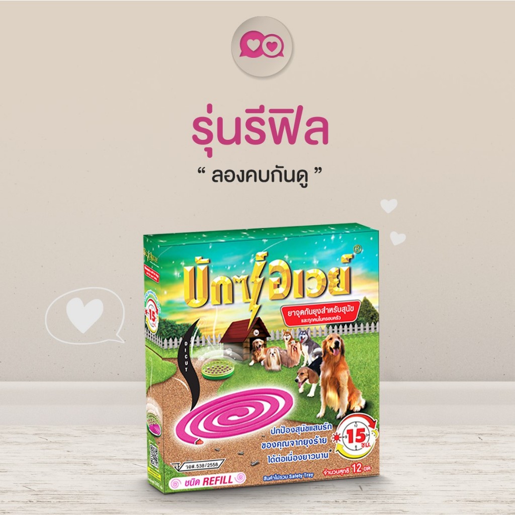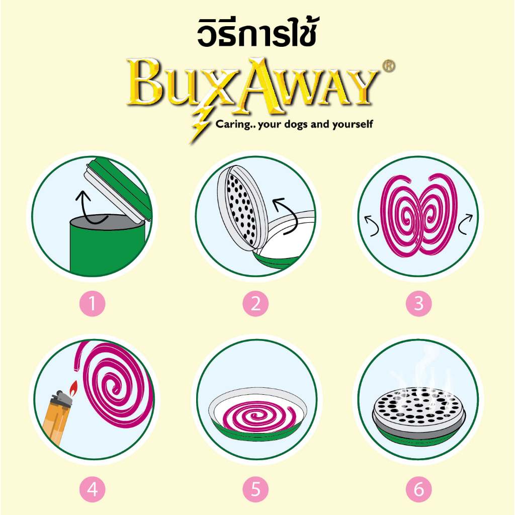 Buxaway 12 ขด รุ่นRefill ยาจุดกันยุง กันแมลง สำหรับสัตว์เลี้ยง หมา แมว bug away