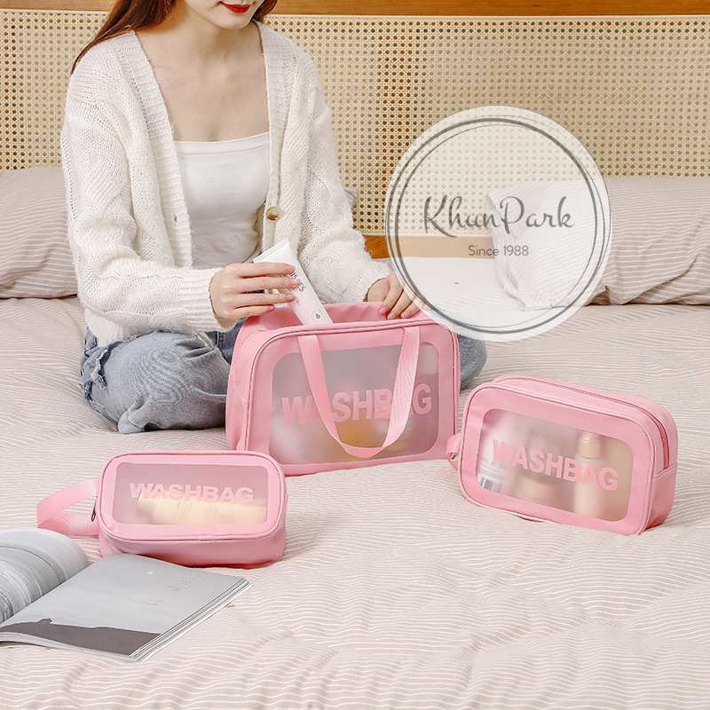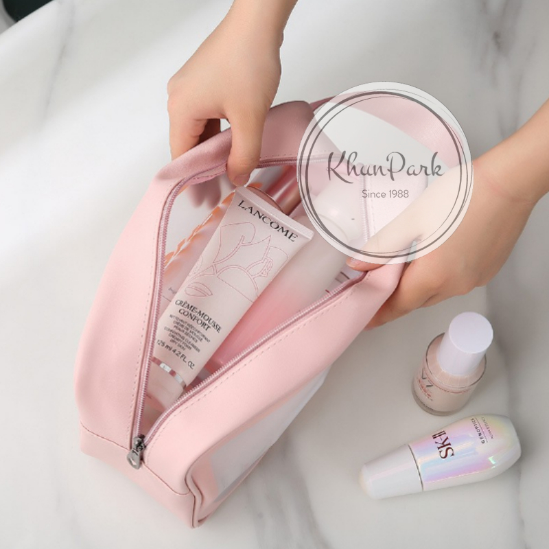 กระเป๋าเก็บเครื่องสำอางค์ 🍞 รุ่น PVCสีใส มีซิป กันน้ำได้ มาพร้อมหูหิ้ว 🎭 ความจุหลายขนาดให้ได้เลือก