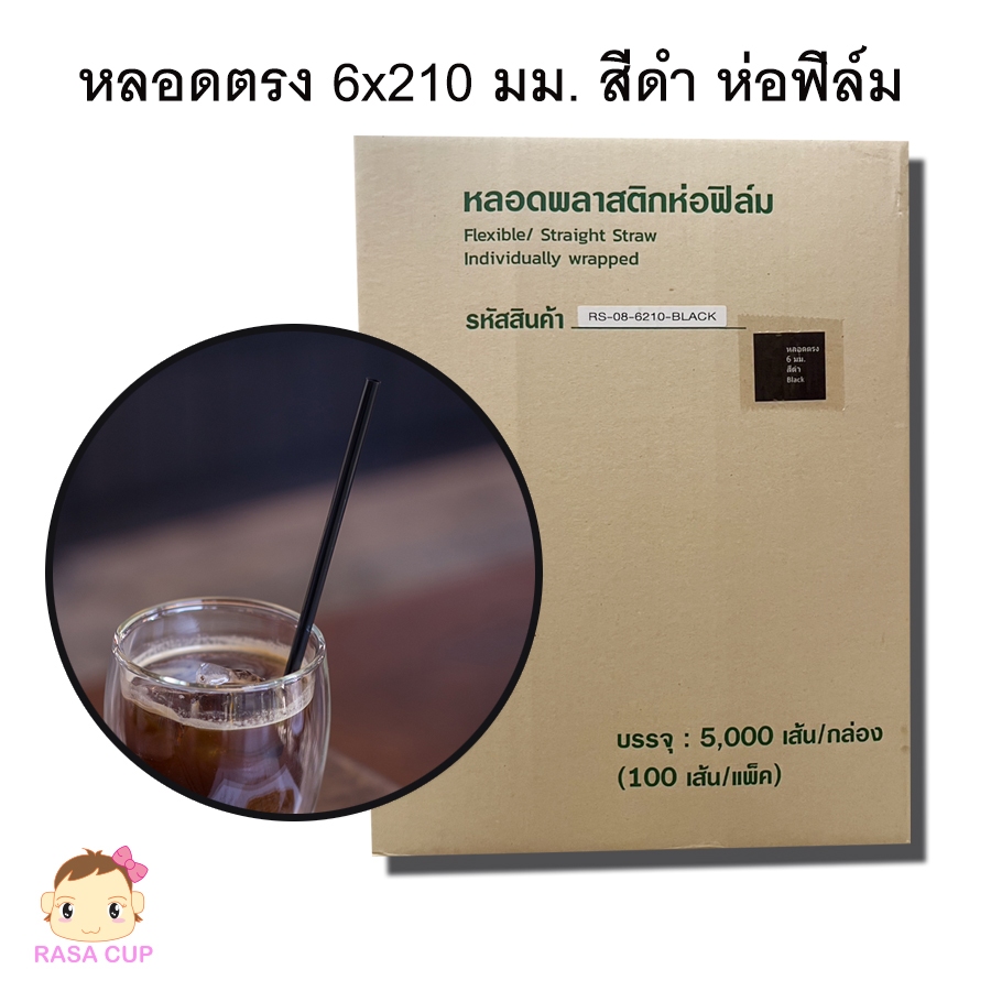 CHM-หลอดตรง6มิล : หลอดตรงขนาด 6x210 มม. ห่อฟิล์มทุกเส้น บรรจุ 200 เส้น (2 แพ็ค) เลือกสีในตัวเลือก