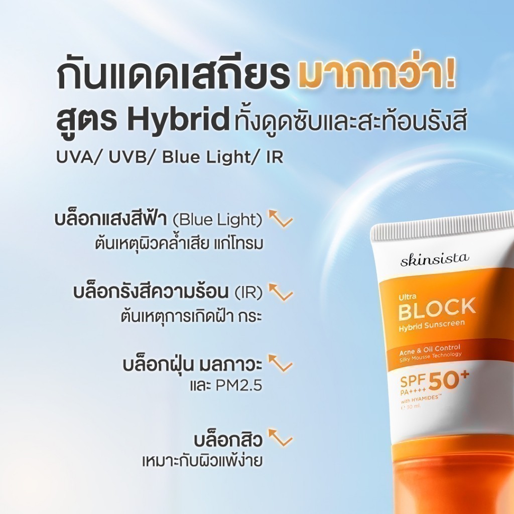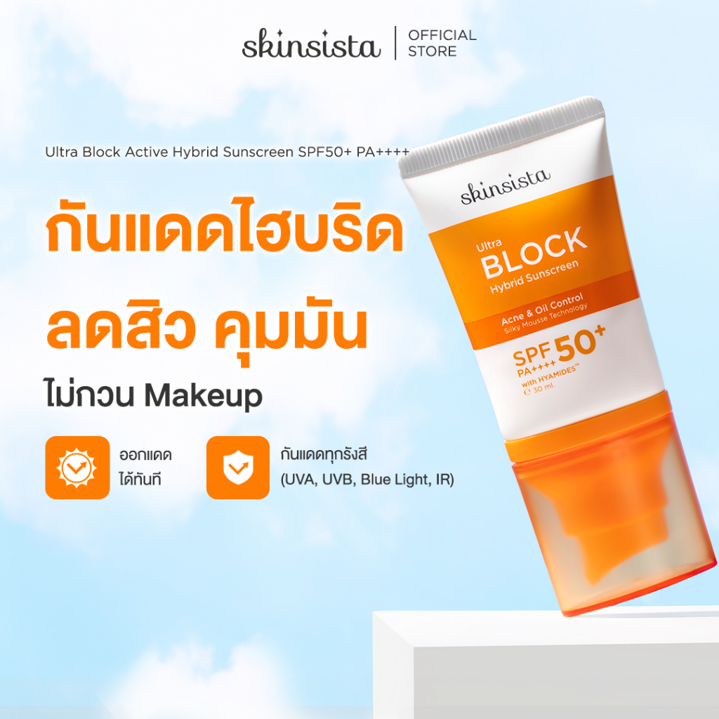 Skinsista ครีมกันแดด คุมมัน กันสิว Ultra Block Hybrid สูตรไฮบริด บล็อกทุกรังสี บางเบา