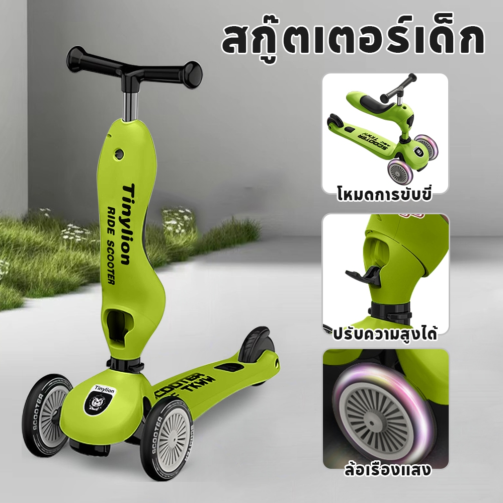 TinyLion 🔥ใหม่🔥 สกู๊ดเตอร์เด็ก สกู๊ดเตอร์ 3 ล้อ ปรับความสูงได้ 3 ระดับ ล้อมีแฟลช Scooter มีเพลง