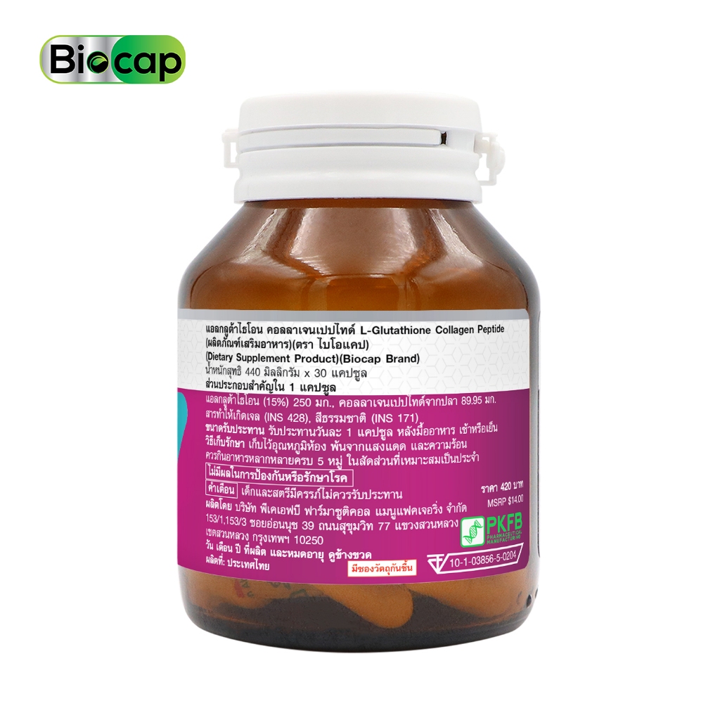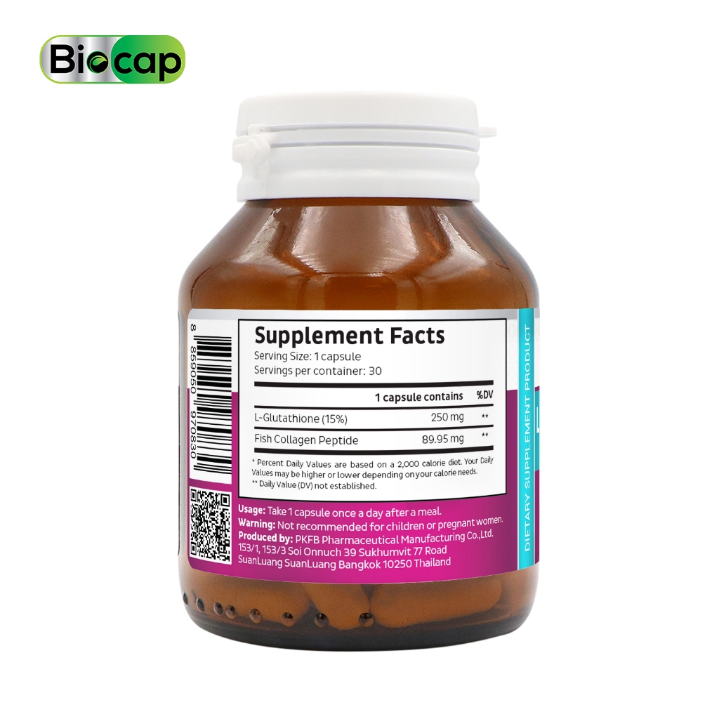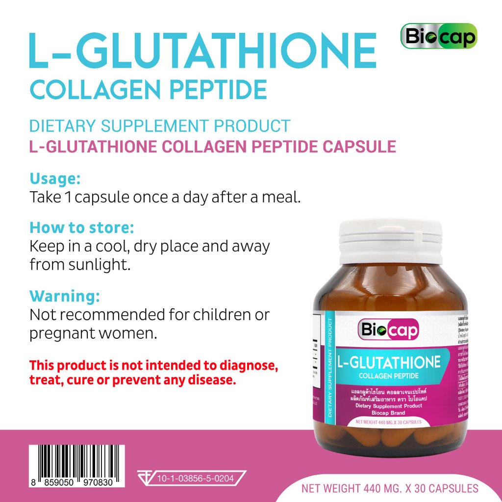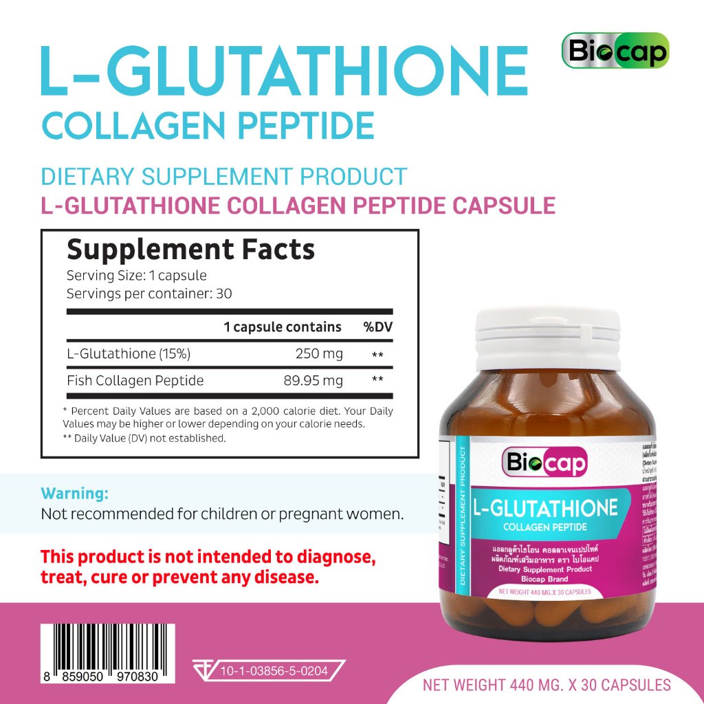 กลูต้าพลัส คอลลาเจนเปปไทด์ x1 ขวด ไบโอแคป แอลกลูต้าไธโอน กลูต้า พลัส L-Glutathione Collagen Peptide Biocap