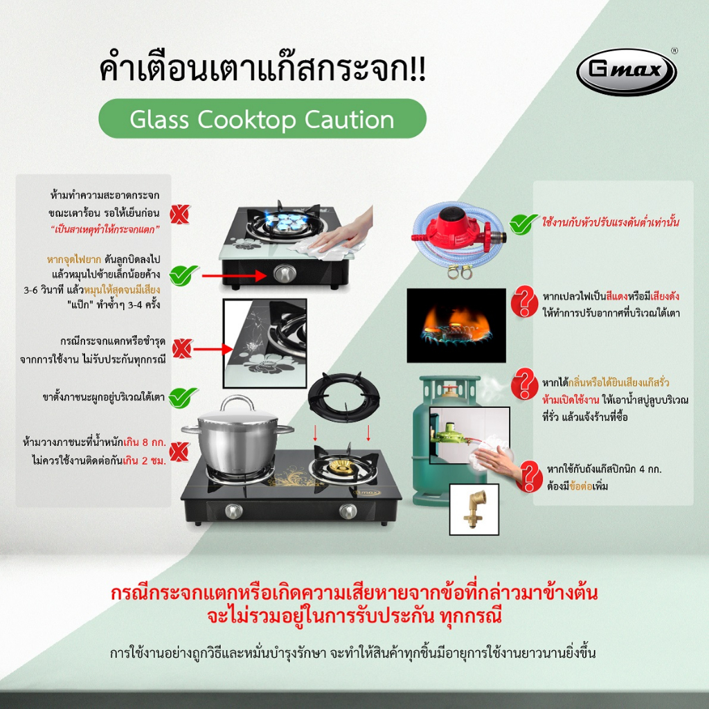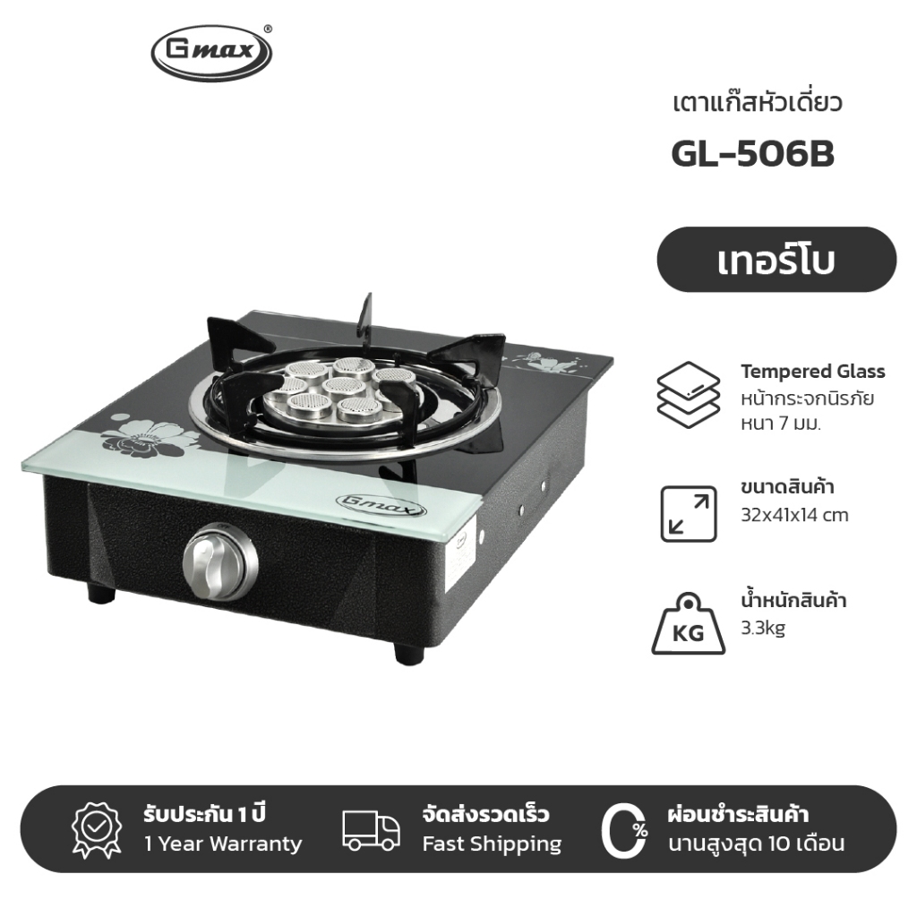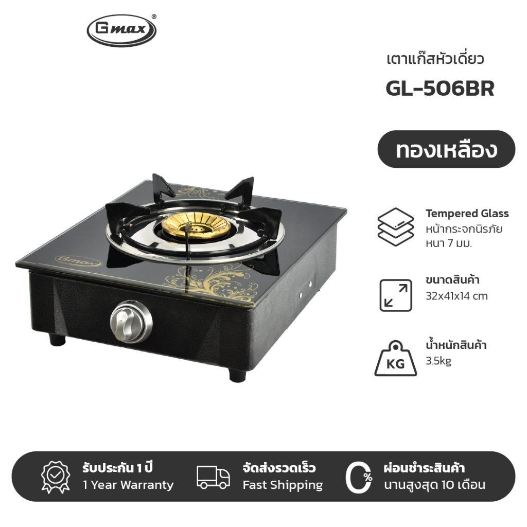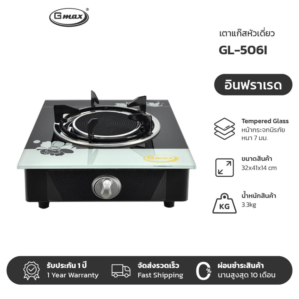 Gmax เตาแก๊สหัวเดี่ยว Gas Stove เตาแก๊สหน้ากระจก รุ่น GL-Series เตาแก๊สตั้งโต๊ะ กระจกนิรภัย