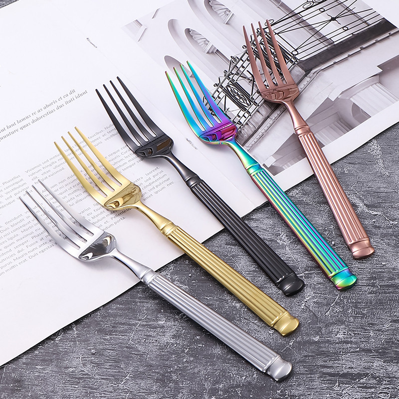 Katelv ชุดช้อน ส้อม มีด สเตนเลส แบบหนา ด้ามจับคอลัมน์โรมัน คุณภาพสูง 5 ชิ้น ต่อชุด