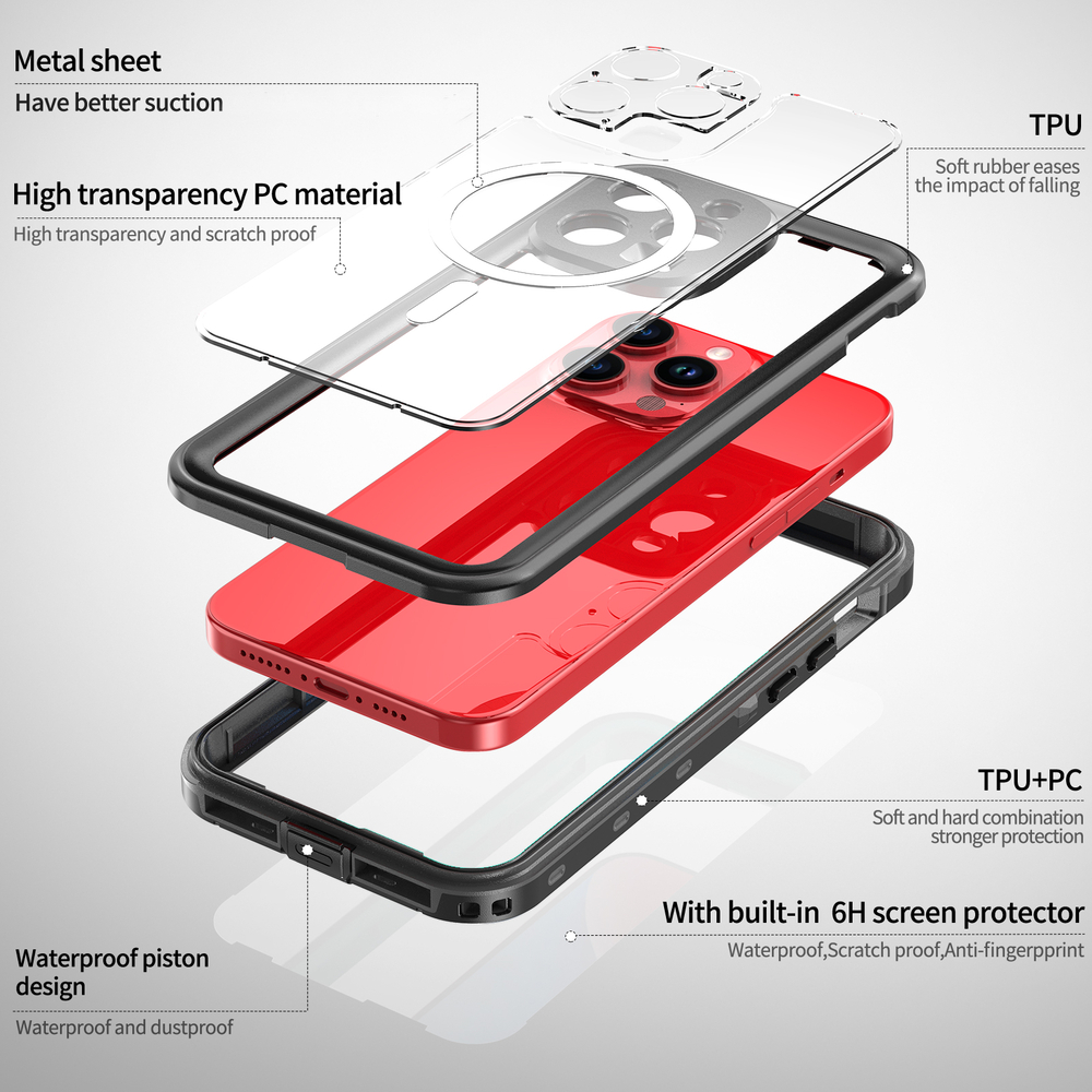 Redpepper Dot Series Water Proof Clear Magnetic เคสกันกระแทกและกันน้ำเกรดพรีเมี่ยม เคสสำหรับ iPhone12/13/14/15Series