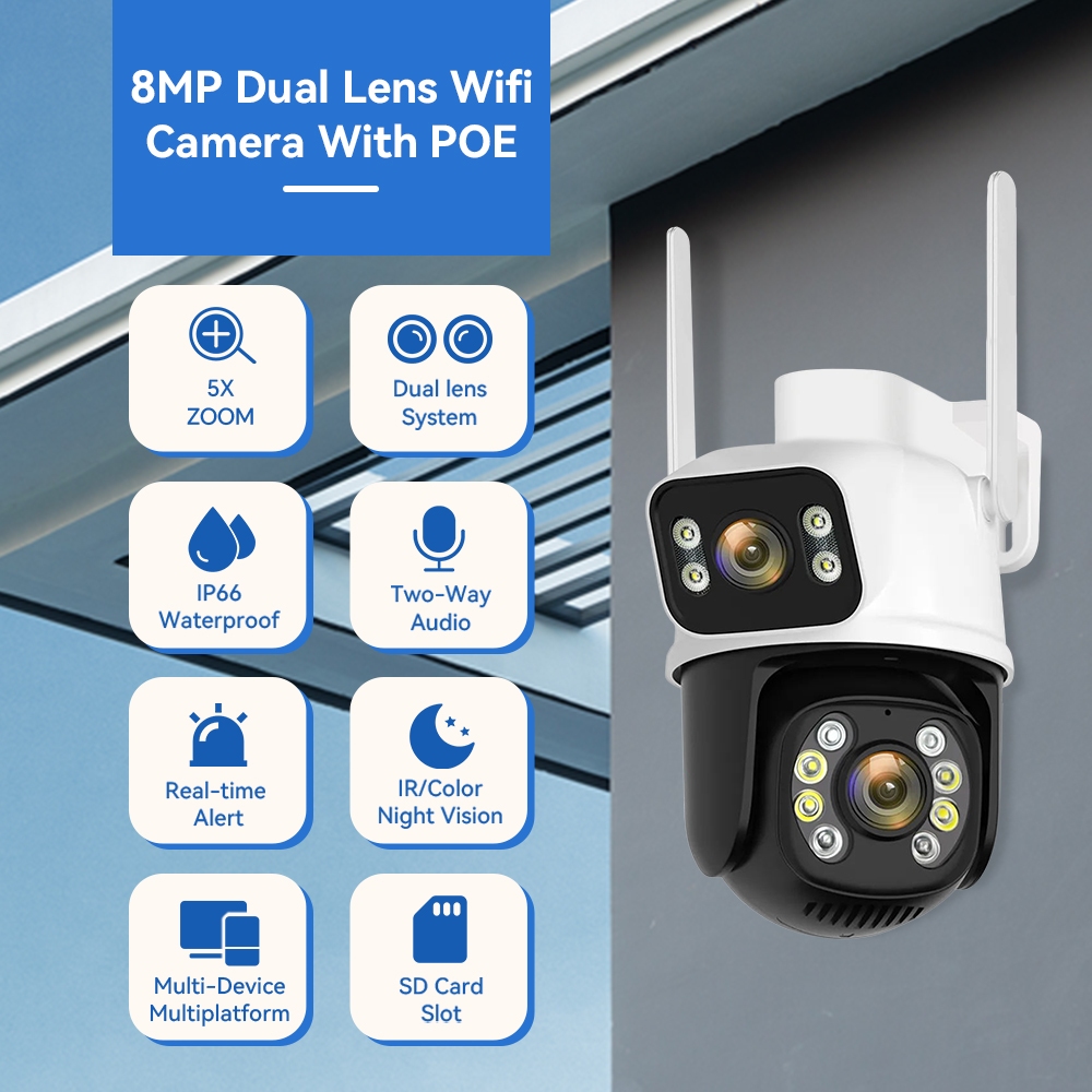 Hamrol 4K 8MP POE PTZ Camera Auto Tracking Waterproof Color Night Vision Wireless/Wired Security CCTV