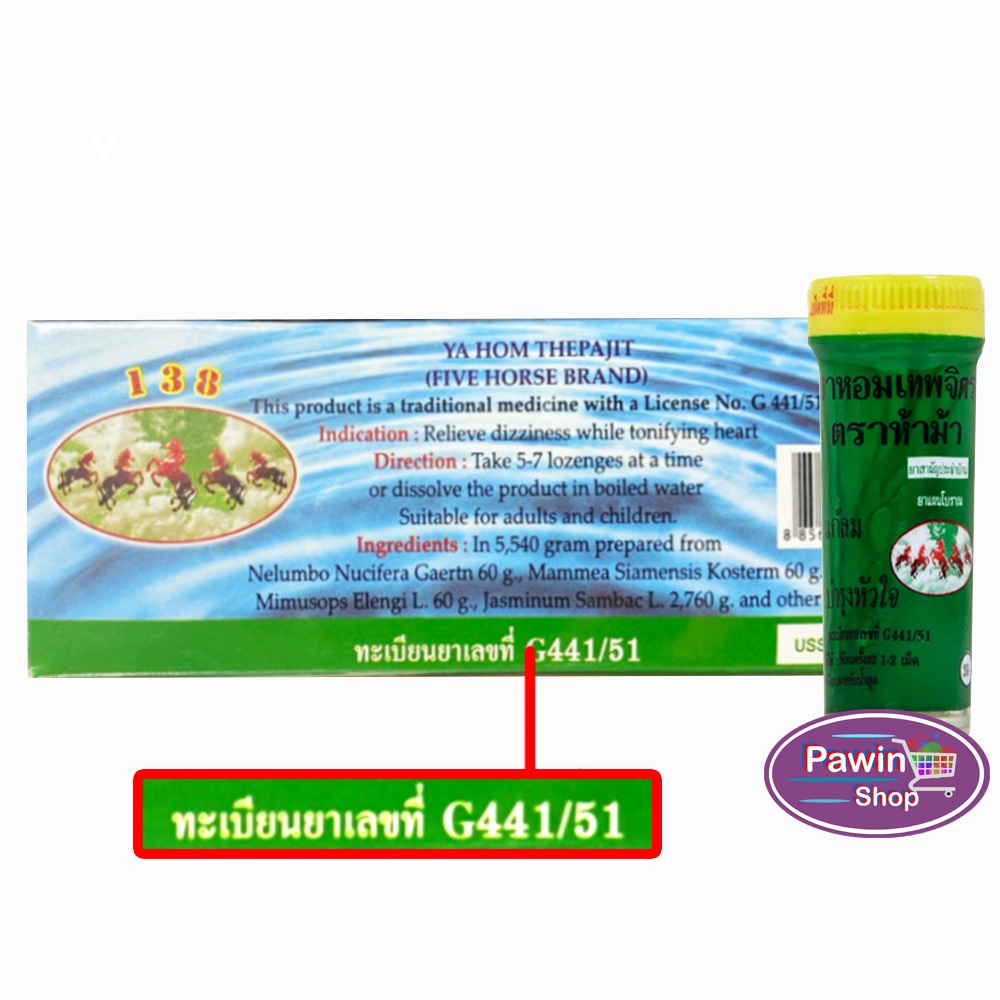 ห้าม้า ยาหอมเทพจิตร เม็ดอม ขนาด 30 เม็ด [24 ขวดเล็ก/1 กล่อง] ห้าม้าโอสถ 901 ยาหอมเทพจิตร ตราห้าม้า [ยกกล่อง24หลอด]