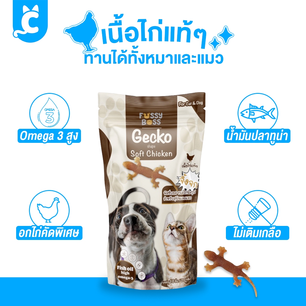 [ส่งฟรี🇹🇭] Fussy Boss ขนมแมว ขนมสุนัข Gecko ขนมไก่นิ่มรูปจิ้งจก 10 ชิ้น ฟัสซี่บอส CleverPet