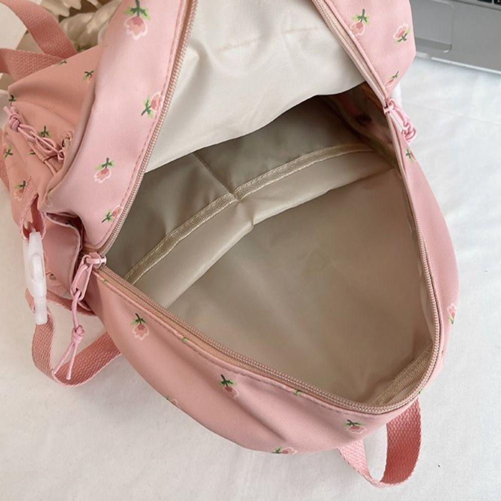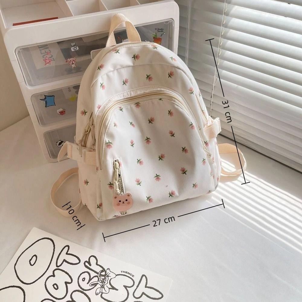 HOBBYIN กระเป๋านักเรียน,กระเป๋าเป้สะพายหลังโรงเรียนความจุขนาดใหญ่ลายดอกไม้,ผ้าใบคุณภาพสูงสายคล้องไหล่ปรับได้กระเป๋าเดินทางแบบพ