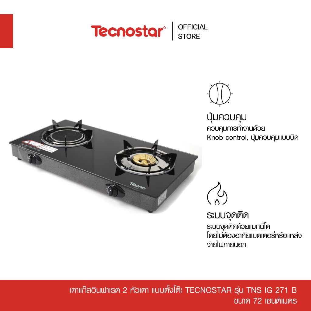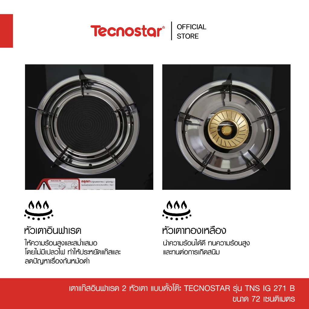 เตาแก๊สอินฟาเรด 2 หัวเตา แบบตั้งโต๊ะ Tecnostar รุ่น TNS IG 271 B