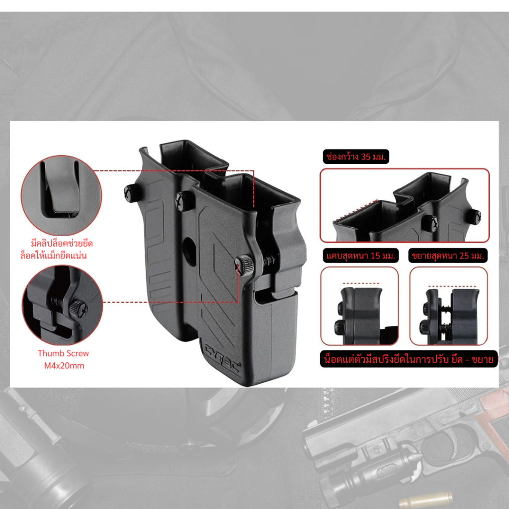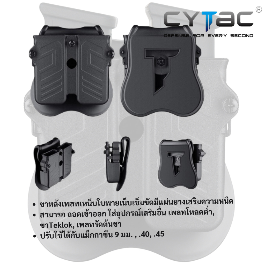 ซองสำหรับใส่แม็กกาซีนคู่ 9 มม./.40/.45 แบรนด์ cytac ขาใบพาย/ขาteklok