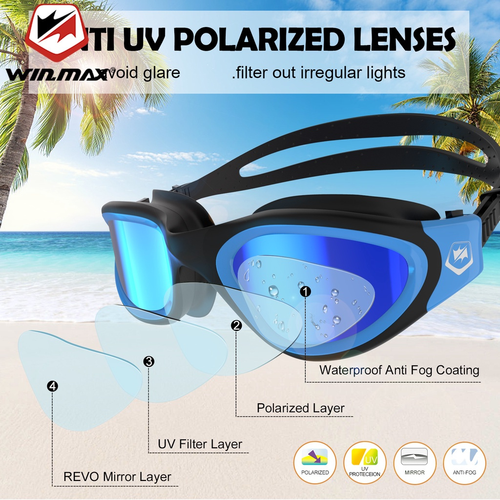 Winmax แว่นตาว่ายน้ํา เลนส์โพลาไรซ์ ป้องกันหมอก ป้องกันรังสียูวี กันน้ํา สําหรับผู้ใหญ่