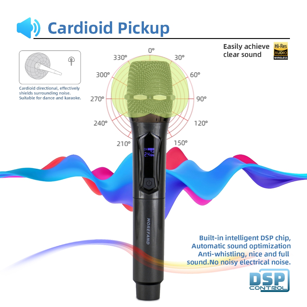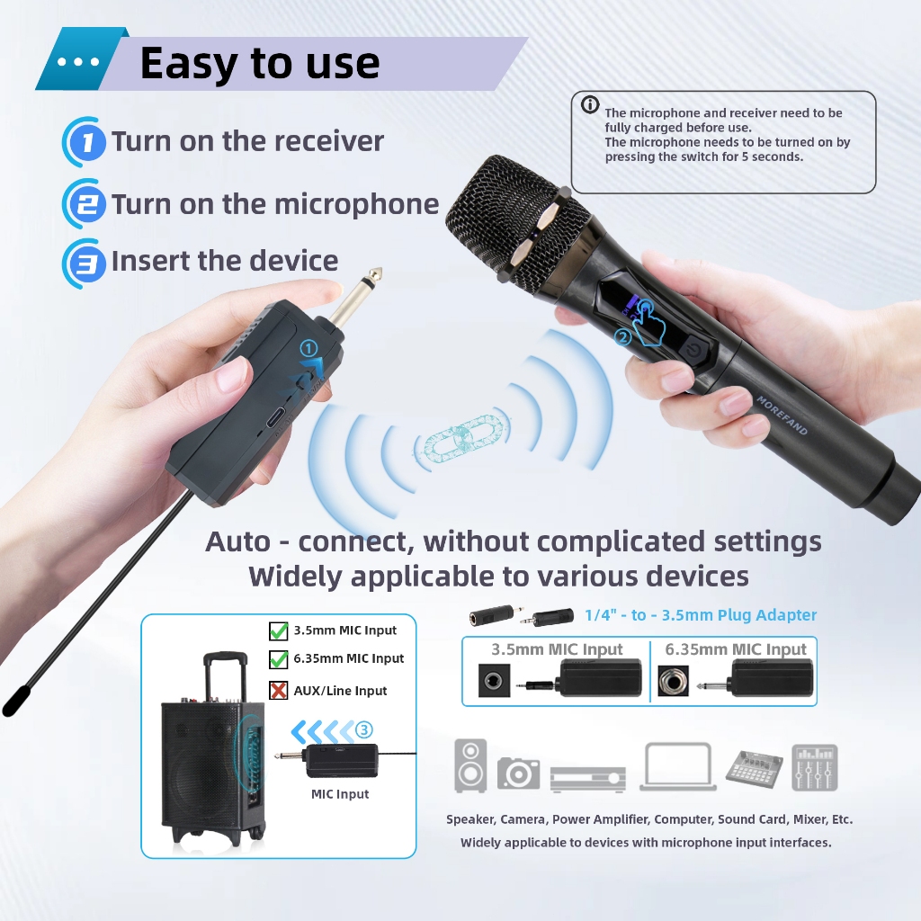 MOREFAND [รุ่นอัพเกรดการชาร์จ] \SU108B1/B2 ไมโครโฟนไร้สาย UHF การชาร์จ 5V, Plug and Play 6.5 มม. ระยะรับ 50 ม. KTV