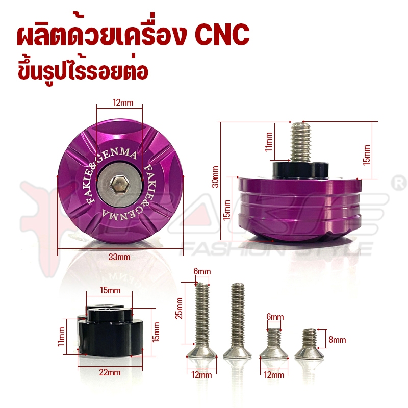 FAKIE อุดปลายแฮนด์ M6 ตุ้มปลายแฮนด์ รุ่น V.5 ขนาด 33mm น้ำหนัก 0.07kg สำหรับ Click160 PCX160 ADV160
