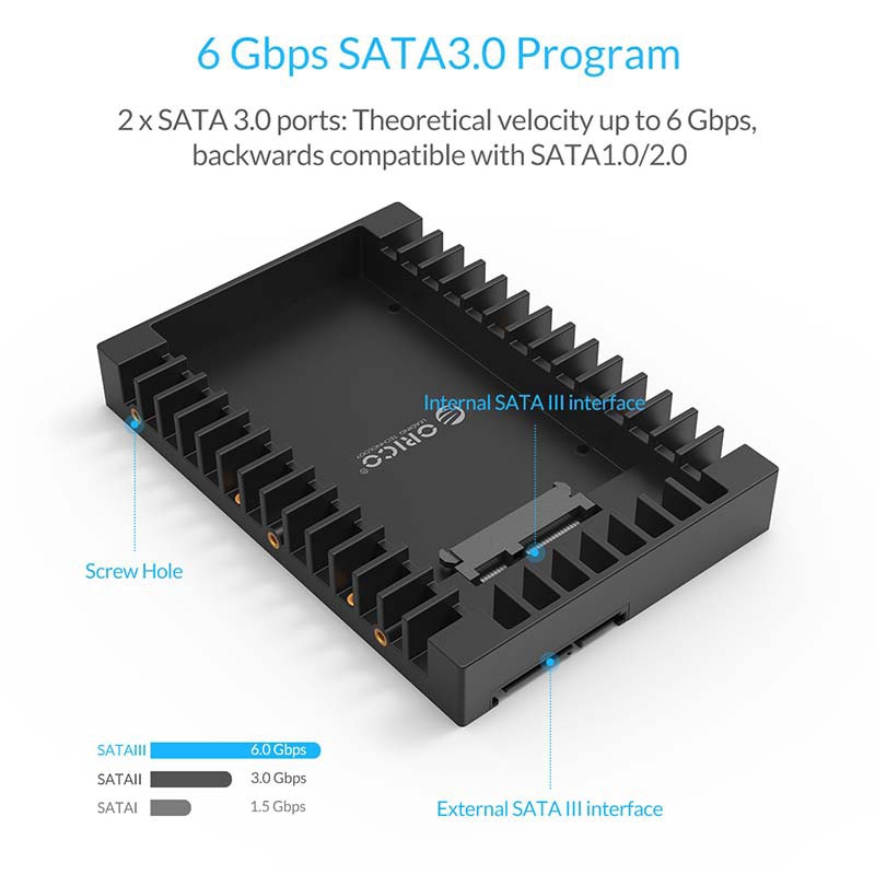 Orico แคดดี้ฮาร์ดไดรฟ์ 2.5 นิ้วถึง 3.5 นิ้วรองรับ SATA 3.0 ถึง USB 3.0 6Gbps รองรับ 7 / 9.5/12.5 มม. 2.5 นิ้ว SATA HDDs และ SSD (1125SS-V1)