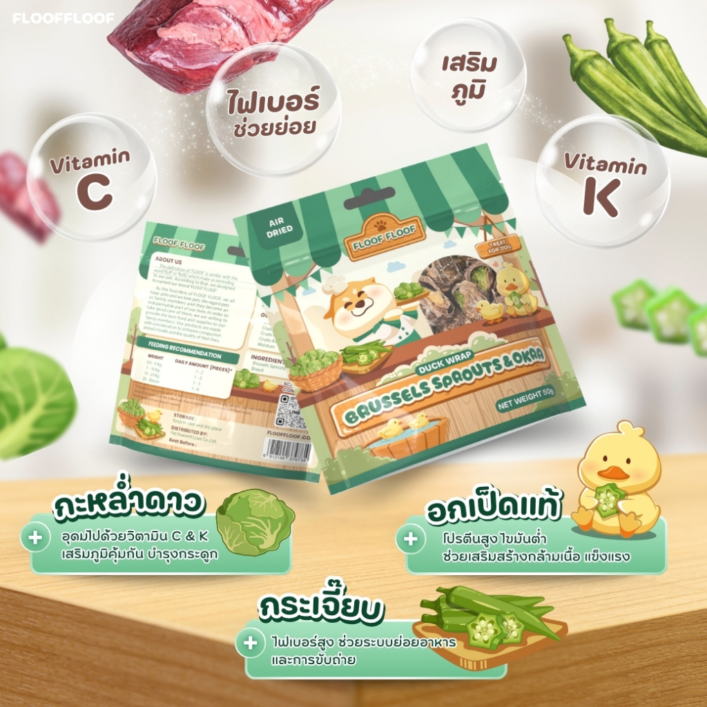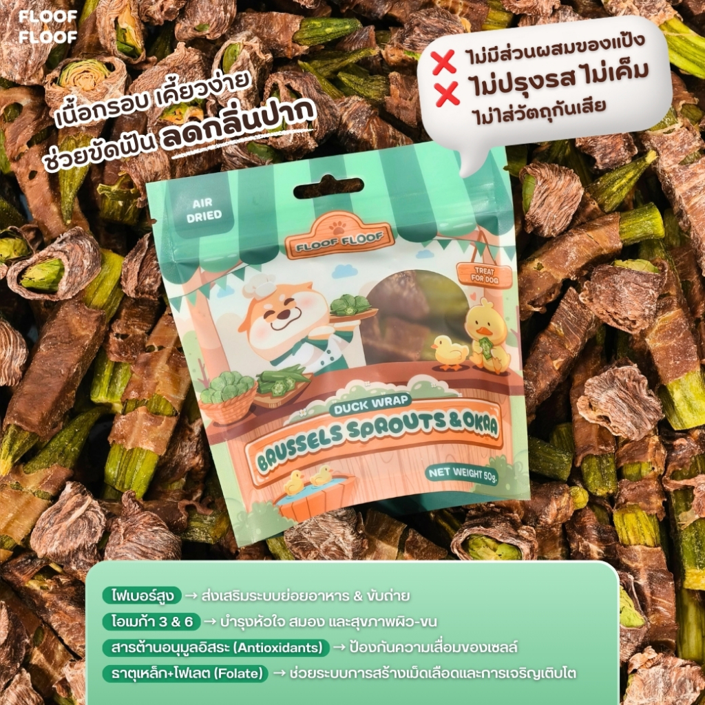 FLOOFFLOOF ขนมขัดฟัน อกเป็ดอบแห้ง พันกะหล่ำดาว+กระเจี๊ยบ 🦆 (ขนมสุนัข) โปรตีนสูง ไขมันต่ำ