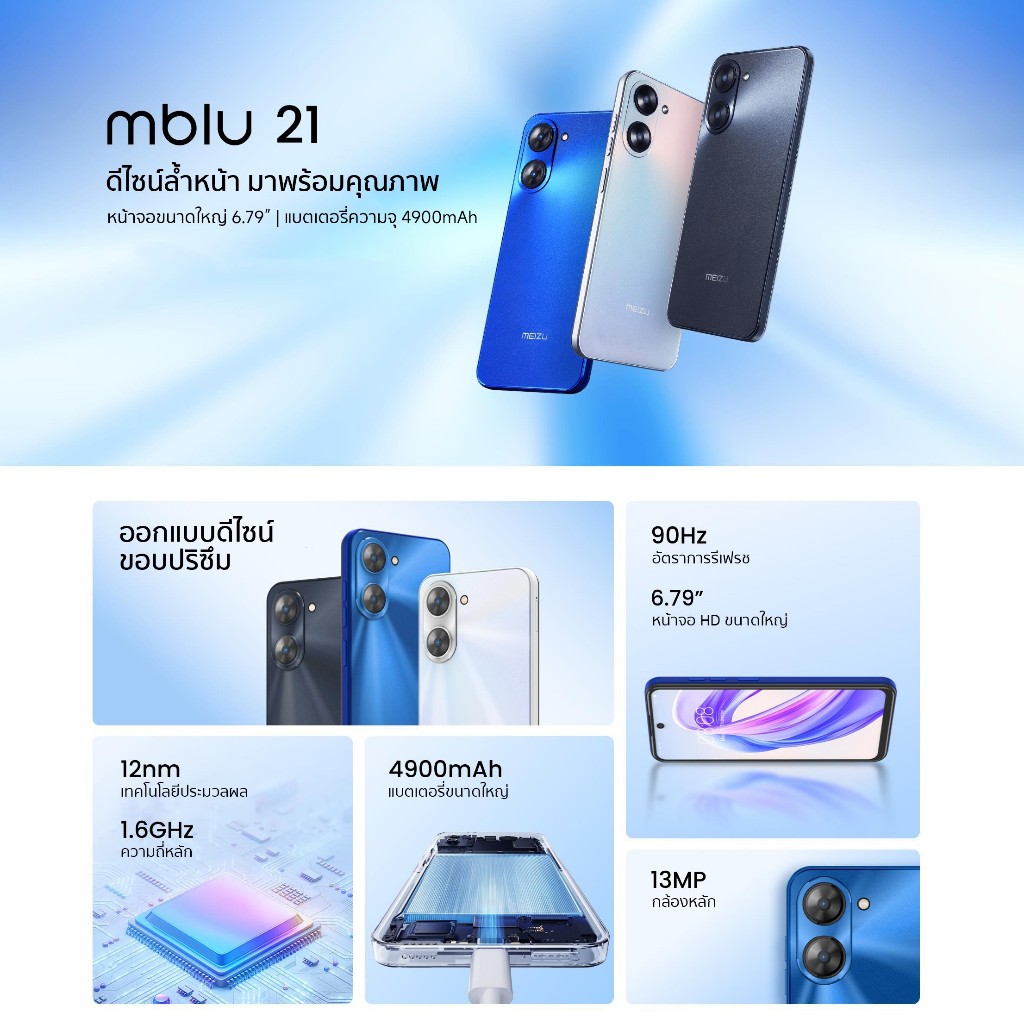 Meizu MBlu 21 (6+128GB) จอ 6.79" 90Hz ชิป T606 แบตอึด 4900mAh มือถือราคาถูก ประกัน 12 เดือน